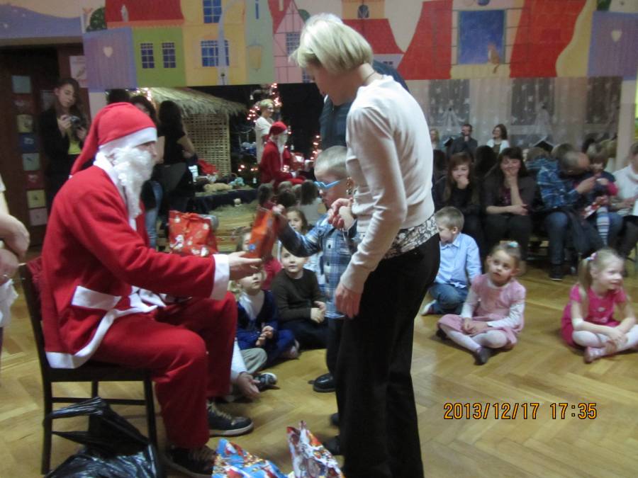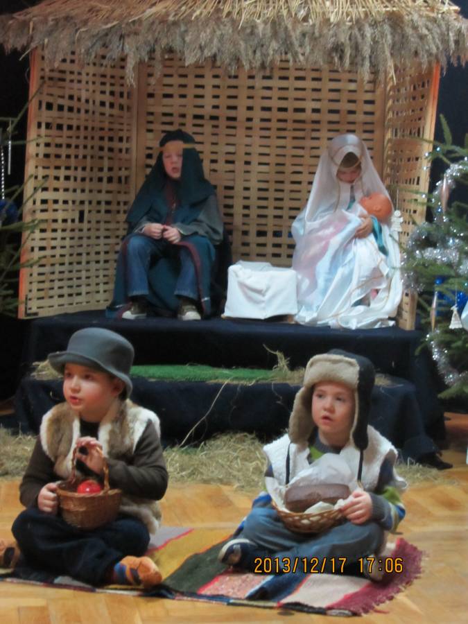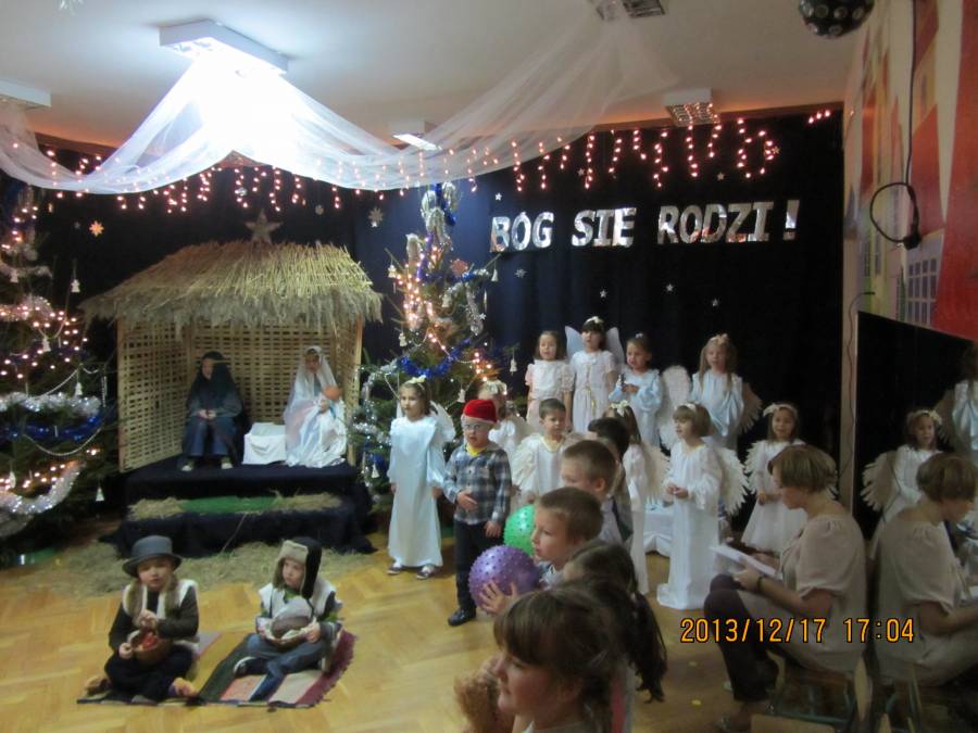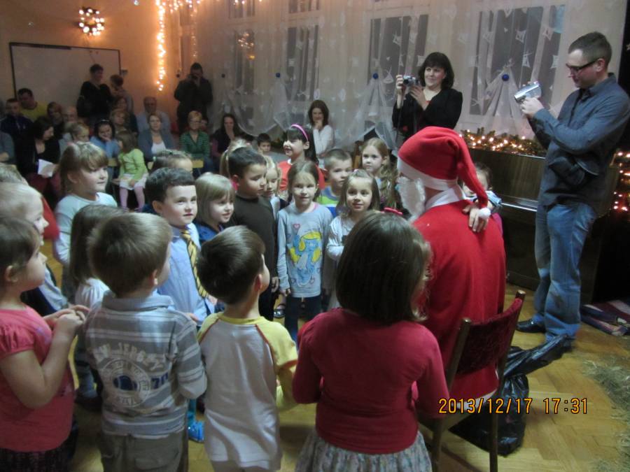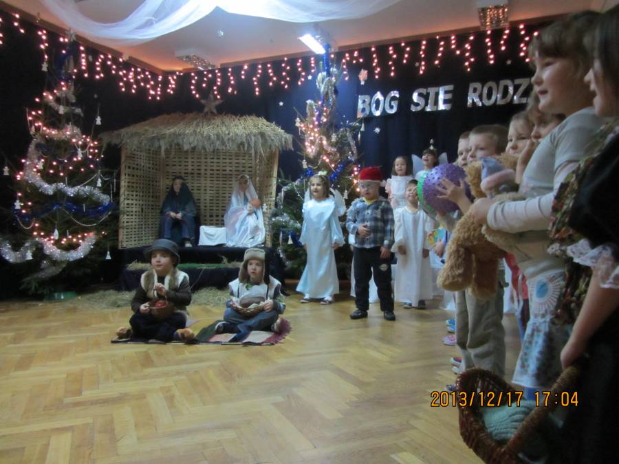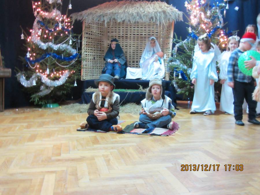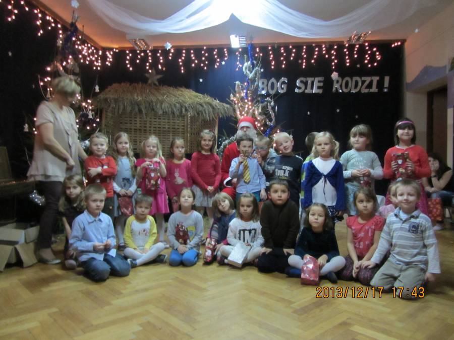 Dziecięca interpretacja narodzin Jezusa Chrystusa, kolędy, świąteczne dekoracje, opłatek i wzajemne życzenia pozwoliły wszystkim wczuć się w atmosferę zbliżających się Świąt. Każde dziecko miało swój, choćby maleńki wkład w to przedstawienie. Wykonując kolędy i świąteczne piosenki dzieci wprowadziły nas w cudowną magiczną noc. Goście ze wzruszeniem oglądali piękny program w wykonaniu dzieci. Na zakończenia przedstawienie przybył Mikołaj, który nie tylko dzieci obdarował prezentami, ale i rodziców.
