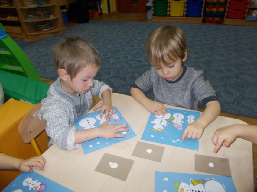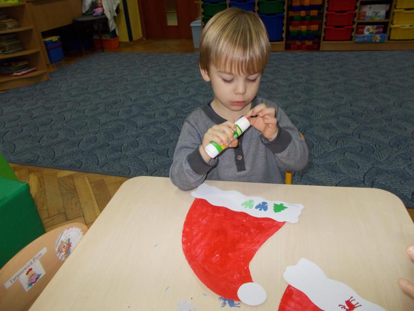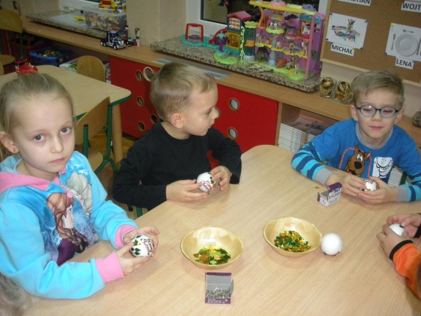 Przedszkolaki przygotowywały własne dekoracje choinkowe - ozdabiały bombki, które podarowała dzieciom mama Kuby