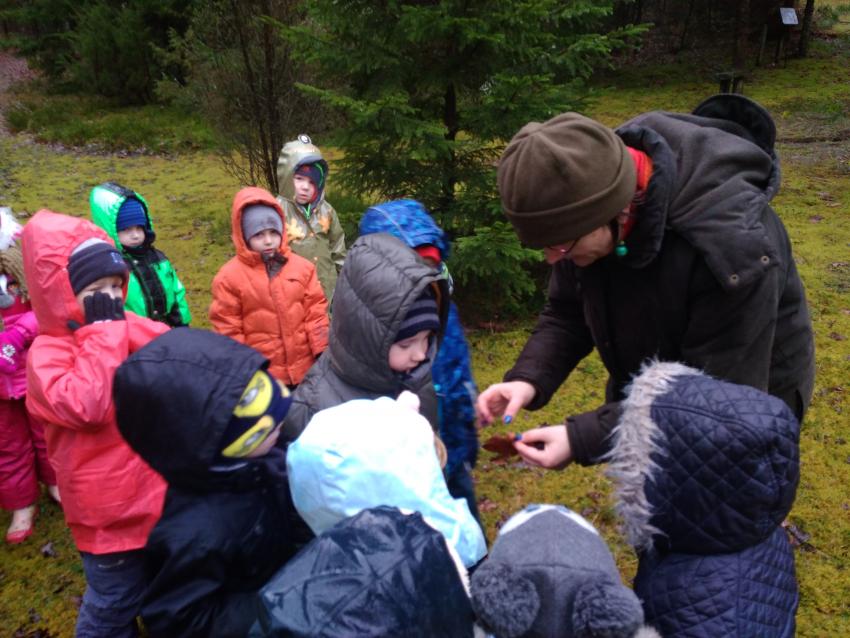 Wprawdzie nie udało się spotkać prawdziwego jeża w lesie, ale zainspirowani opowieściami pani Iwony, postanowiliśmy sami wykonać jeże z plasteliny i położyć je w kolorowej liściowej pierzynce do zimowego snu.