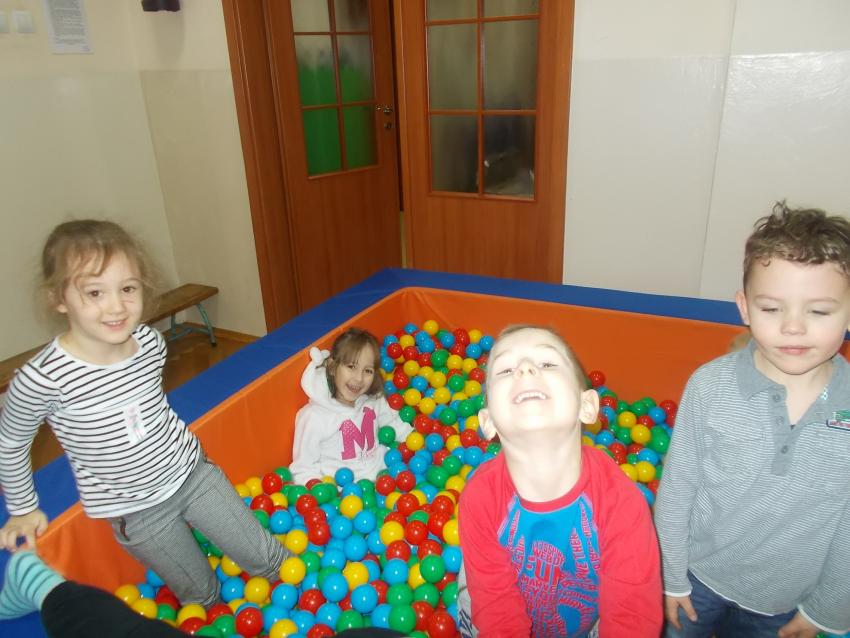 Zabawy w baseinie z kulkami- przedszkolnym prezencie od Mikołaja:)