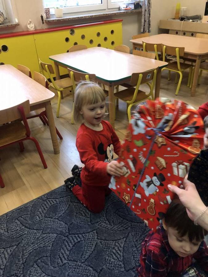Grupę Pszczółek odwiedził Święty Mikołaj! Wszystkie dzieci spisały się na medal śpiewając świąteczne piosenki, dlatego otrzymały od Mikołaja niespodzianki :)
