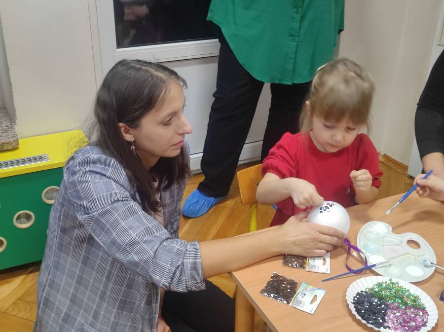 Podczas spotkania z rodzicami na warsztatach bożonarodzeniowych dzieci zaprezentowały piękne piosenki oraz wspólnie wykonaliśmy piękne bombki.