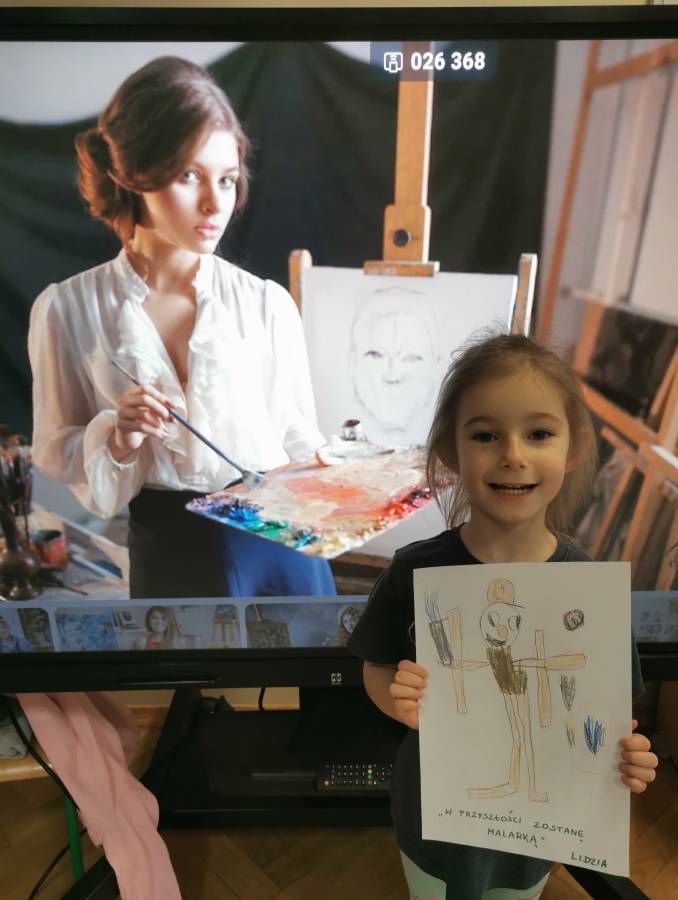 W grudniu dzieci kontynuowały także edukację pro zawodową, w ramach której uczestniczyły w spotkaniu z malarką p. Agatą Michałowską i przyrodnikiem z PKPK.