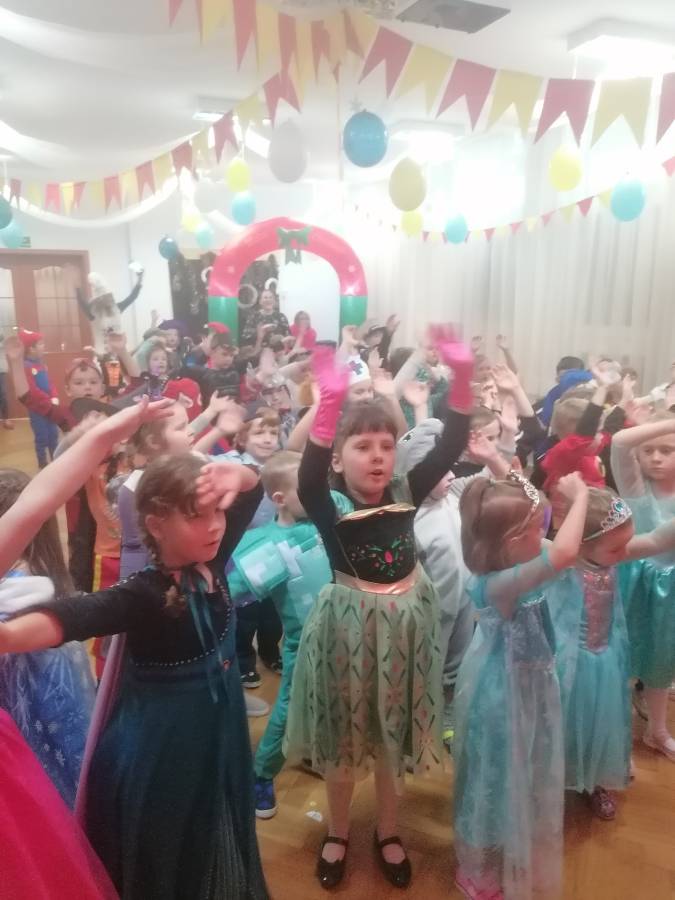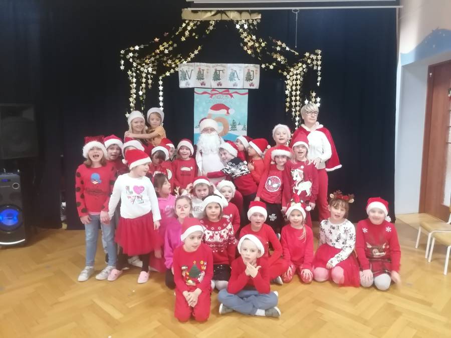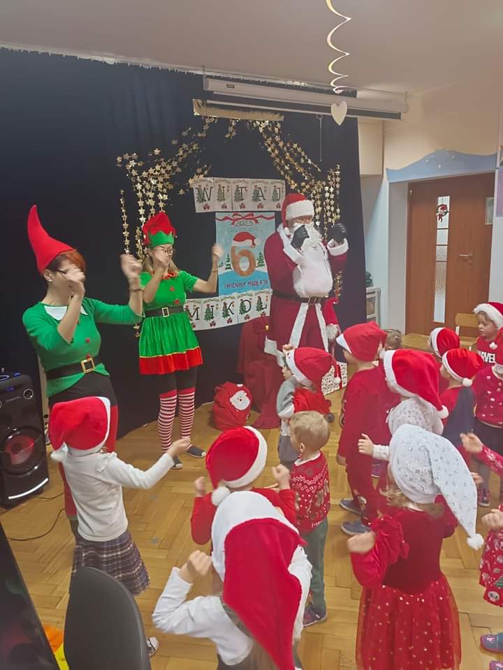 Już od rana słychać było gwar dzieci, które przyszły w tym dniu w mikołajkowych czapkach i ubrane na czerwono. Długo oczekiwany gość - św. Mikołaj okazał się niezwykle wesoły i z chęcią dołączył do wspólnej zabawy i tańców razem z dziećmi.
