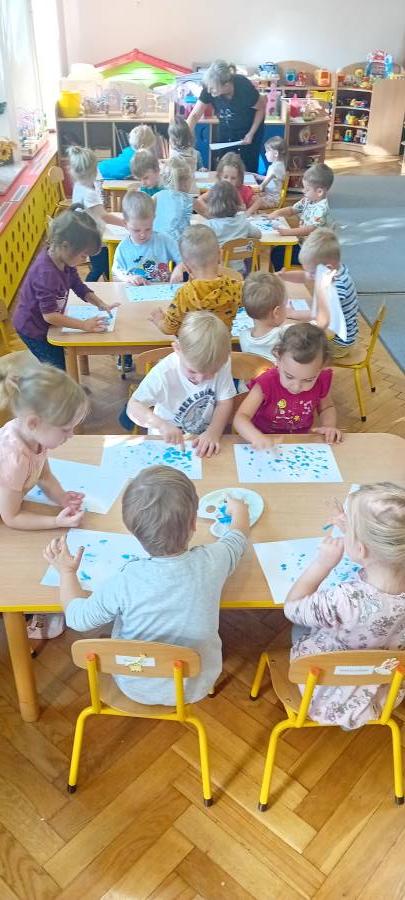 Październik to miesiąc jesienny w naszej grupie. Zajmowaliśmy się warzywami i owocami, zarówno typowo jesiennymi, jak też dojrzewającymi podczas innych pór roku. Dzieci wiedzą, że zjadanie warzyw i owoców bardzo wpływa na nasze zdrowie. Omawialiśmy też Piramidę Zdrowego Żywienia. Wiemy, że aktywność fizyczna ma też wielki wpływ na nasze zdrowie. Rozmawiając na tematy związane ze zdrowiem poruszaliśmy problem dostosowania ubioru do pogody. Odpowiednio ubrani wychodziliśmy do parku i lasu. Dzieci szukały różnych darów jesieni, które skrupulatnie zbierały. Zgromadzone liście, kasztany, żołędzie stały się okazją do działań manipulacyjnych, klasyfikacji, segregacji wg kształtu, koloru i układania rytmów. Dzieci pogłębiały wiedzę przyrodniczą na zajęciach outdoorowych, dowiedziały się dlaczego liście zmieniają kolor i opadają z drzew. Rozmawialiśmy też o drzewach iglastych. Dzieci dowiedziały się po co drzewom są szyszki. Wykonaliśmy też dużo prac plastycznych, kiedy zgłębialiśmy z dziećmi temat sztuki. Stworzyliśmy mapę myśl i dużo zajęć wokół pojęcia ARTYSTA. Dzieci poznały zawody artystyczne. Poznawaliśmy też nowe techniki plastyczne, pogłębialiśmy wiedzę na temat świata muzyki. Omawialiśmy temat związany z teatrem, kinem i fotografią. Październik to bogaty miesiąc na zmiany w przyrodzie i atrakcyjny na zajęcia dla dzieci w przedszkolu.