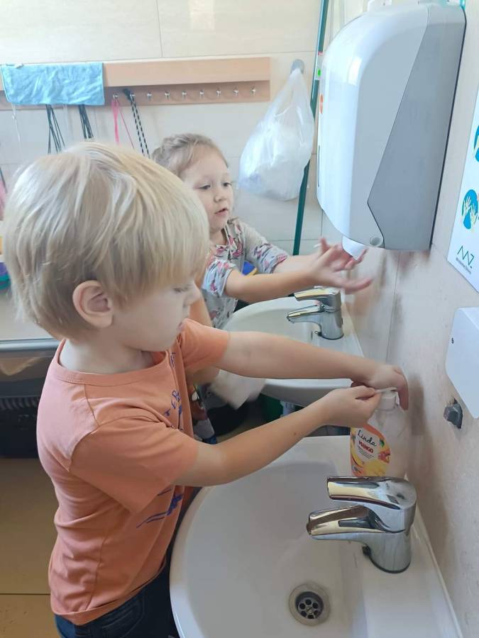 We wrześniu rozmawialiśmy także o tym, jak należy dbać o siebie i o środowisko. Przypomnieliśmy sobie, w jaki sposób powinniśmy codziennie dbać o higienę, by być zdrowym. Wspólnie zastanawialiśmy się, w jaki sposób możemy dbać o porządek wokół nas, a także troszczyć się o bliższe i dalsze środowisko.