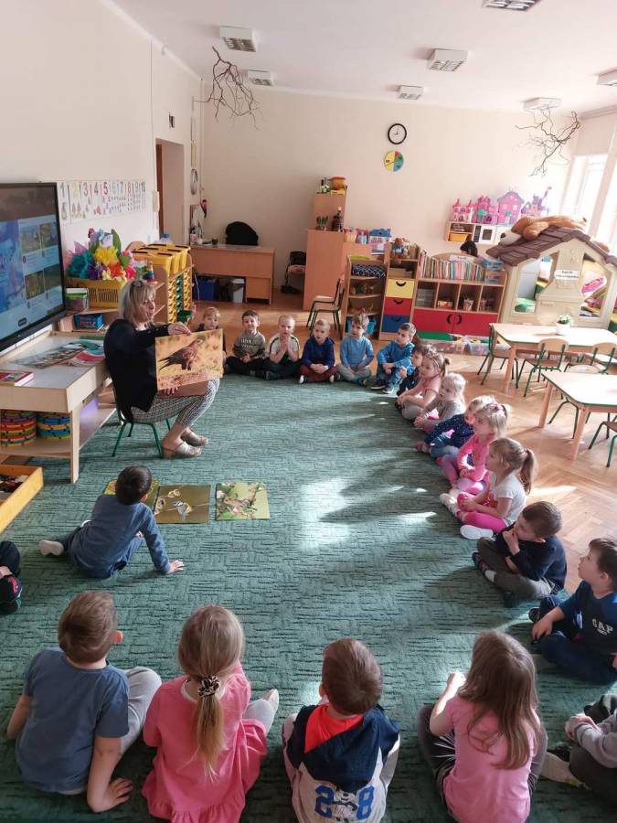 Pani Kasia zabrała nas na wycieczkę po lesie, podczas której dzieci mogły zobaczyć rośliny niespotykane w naszej Puszczy. Dowiedzieliśmy się też wielu ciekawostek na temat leśnych zwierząt, a także wykonaliśmy pracę plastyczną na drewnianych plastrach.