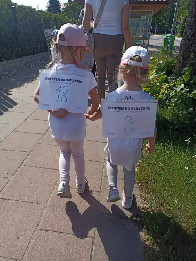 W dniu dzisiejszym 30.05.2023r dzieci z naszego Przedszkola po raz kolejny wzięły udział w IX Ogólnopolskim Maratonie Przedszkolaków ? ?Sprintem do Maratonu " pod honorowym patronatem Ministerstwa Kultury Dziedzictwa Narodowego i Sportu. Celem tego wydarzenia jest promowanie zdrowego stylu życia i aktywnego spędzania czasu , w tym czasu na świeżym powietrzu. Popularyzowanie biegów wśród dzieci oraz wyrabianie u przedszkolaków nawyku podejmowania aktywności fizycznej.