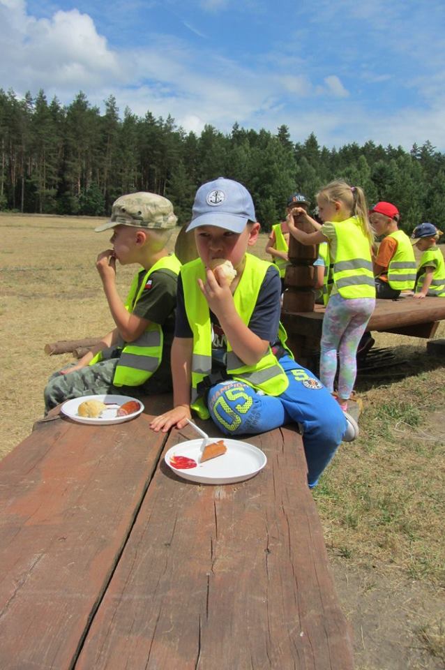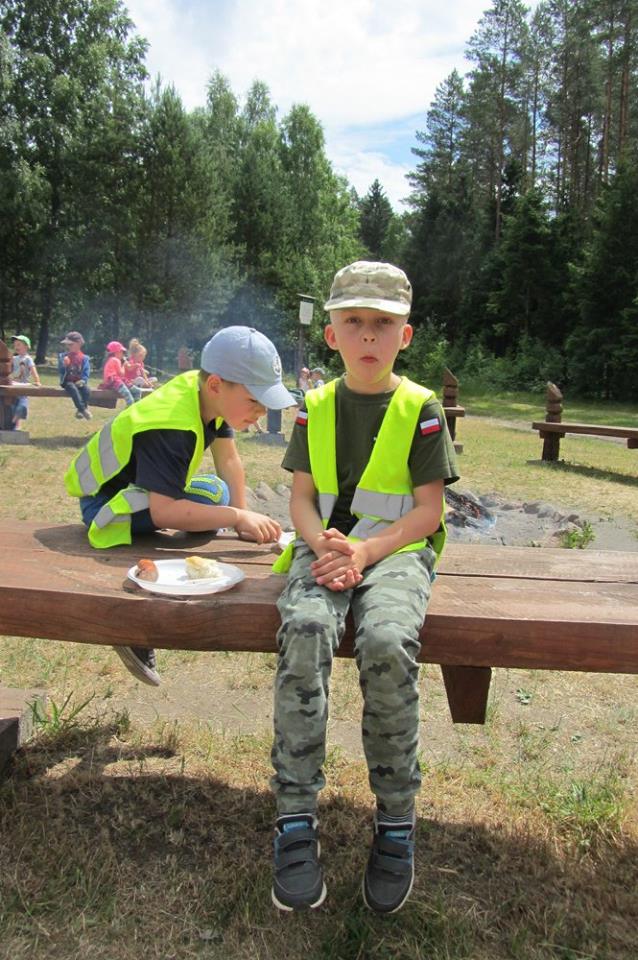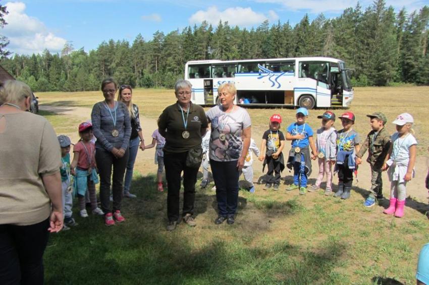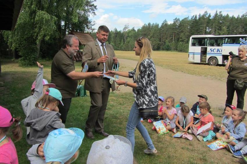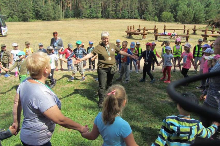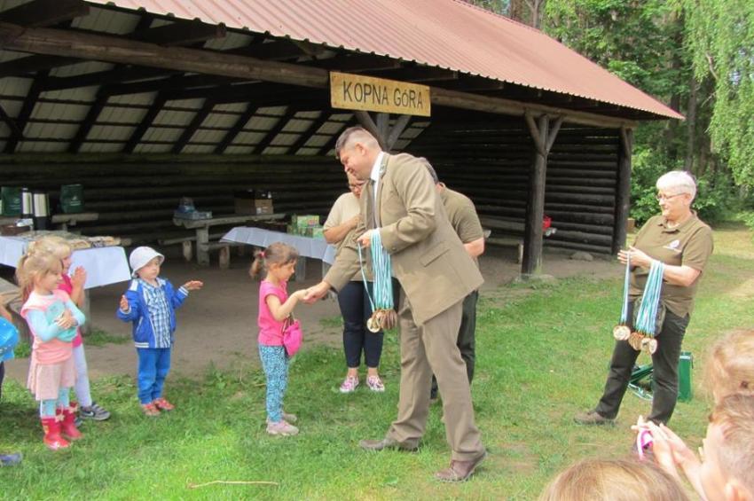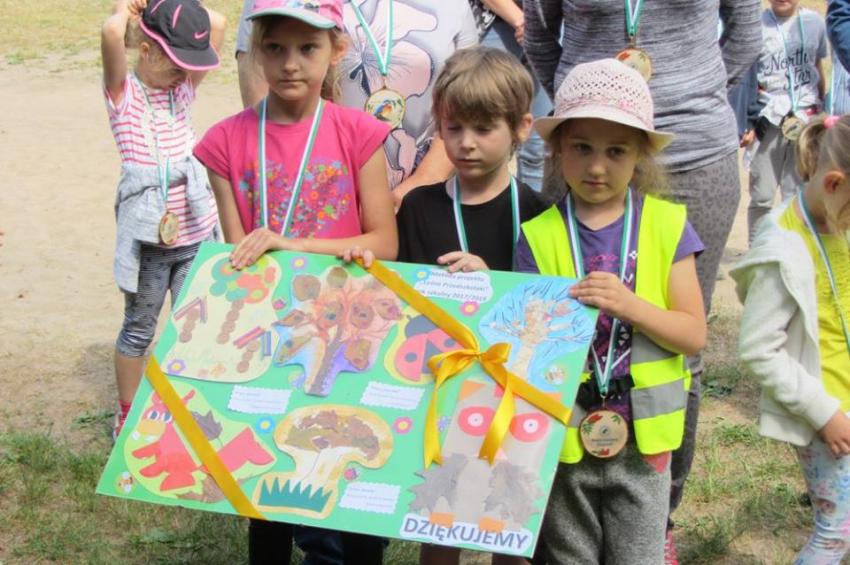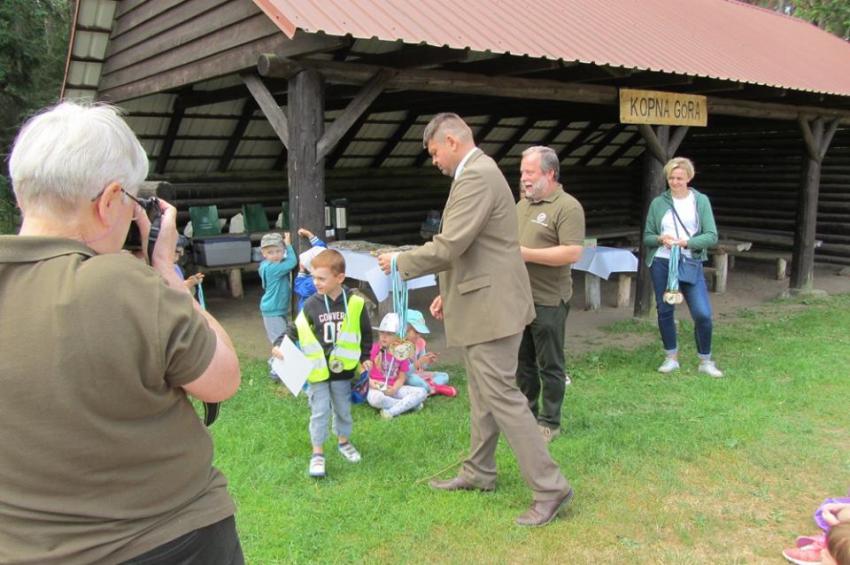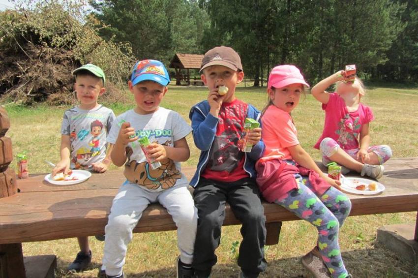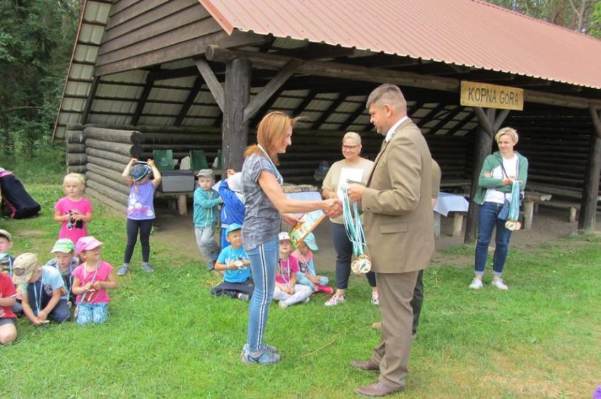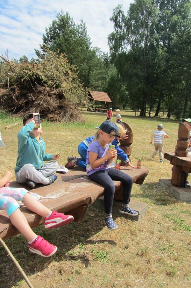 Pracownicy Lasów Państwowych zorganizowali naszym wychowankom pożegnalne ognisko – nie zabrakło kiełbasek i słodyczy, ale także dyplomów, medali i prezentów tematycznie związanych z lasem i jego mieszkańcami. Leśnicy w ten sposób podziękowali przedszkolakom za systematyczną naukę o ochronie przyrody na terenie Arboretum. Dzieci odwdzięczyły się pamiątkowymi pracami plastycznymi, tańcem i piosenką. Tym razem na ogromnej polanie przedszkolaki zajmowały się tylko zabawami ruchowymi, a edukacja przyrodnicza została odłożona do przyszłego roku.