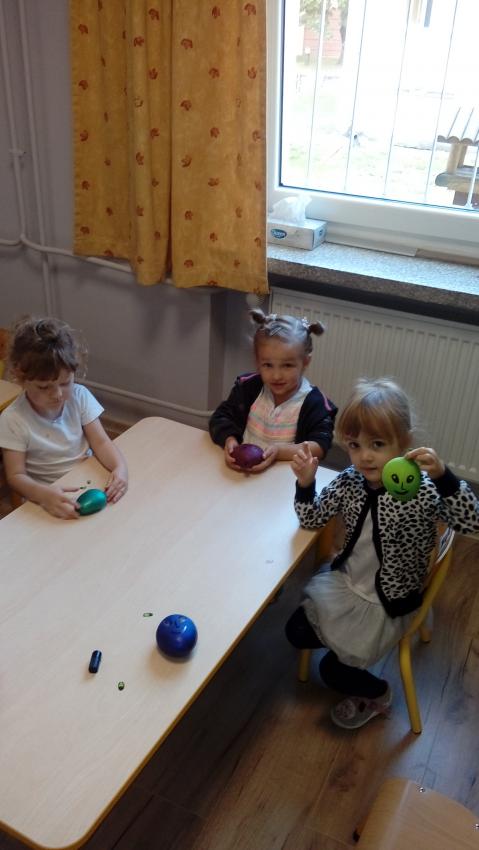 "Gniotki" w naszej grupie wywołały wiele radości i uśmiechu. Prosta zabawka wykonana z balonu i mąki ziemniaczanej pozwala dziecku wyrzucić z siebie negatywne emocje, przy okazji rozwijając małą motorykę.