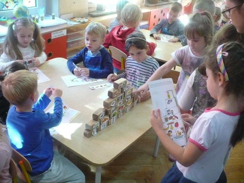 W tygodniu „Dbamy o zdrowie” zajmowaliśmy się szeroko pojętym tematem zdrowia człowieka. Poznaliśmy Piramidę Zdrowego Żywienia i Aktywności Fizycznej oraz utrwaliliśmy nazwy produktów należących do każdego piętra piramidy. Poznaliśmy również kolejną cyfrę – 2, co pozwoliło nam na poznanie numeru alarmowego 112. Poprzez scenki sytuacyjne utrwaliliśmy wiedzę o rodzajach pomocy, którą niosą poszczególne służby ratunkowe. Mamy świadomość, że znajomość tego numeru może uratować zdrowie a nawet życie. Oprócz cyfry 2, poznaliśmy także nową literę – I, i, która kształtem przypomina igłę z przyszywanym guziczkiem.