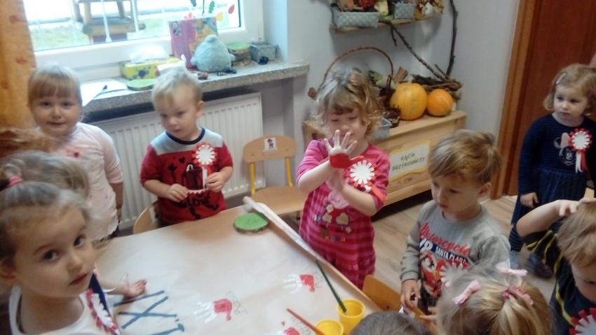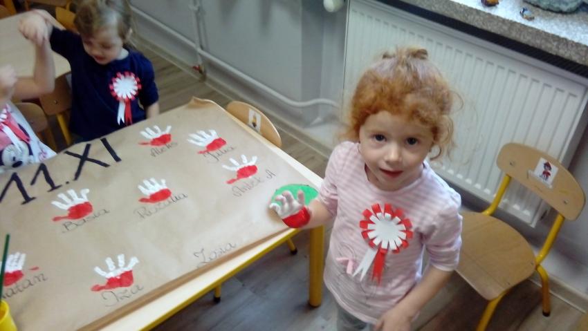Utrwalały symbole narodowe, śpiewały hymn, otrzymały kotyliony w barwach narodowych, a także odbijały swoje biało - czerwone rączki.