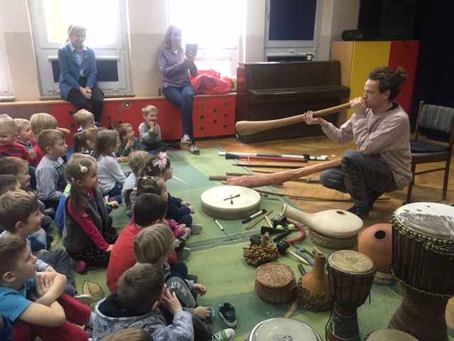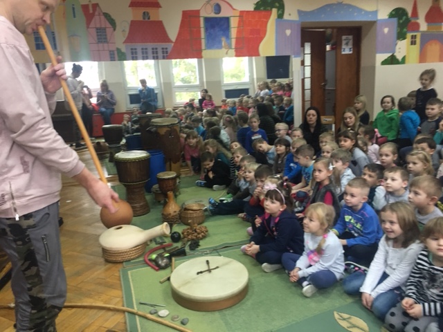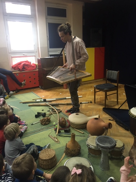 Gościliśmy dzisiaj niezwykłego gościa, który pokazał nam ciekawe i egzotyczne instrumenty muzyczne rodem z Azji, Ameryki Południowej i Północnej, Afryki, Indii, Australii i Europy. Prowadzący to pasjonat i twórca muzyki, który opowiadał o historii, pochodzeniu i budowie instrumnetów. Odbył się także krótki koncert muzyczny. Na koniec mogliśmy też spróbować zagrać na niektórych instrumentach.
