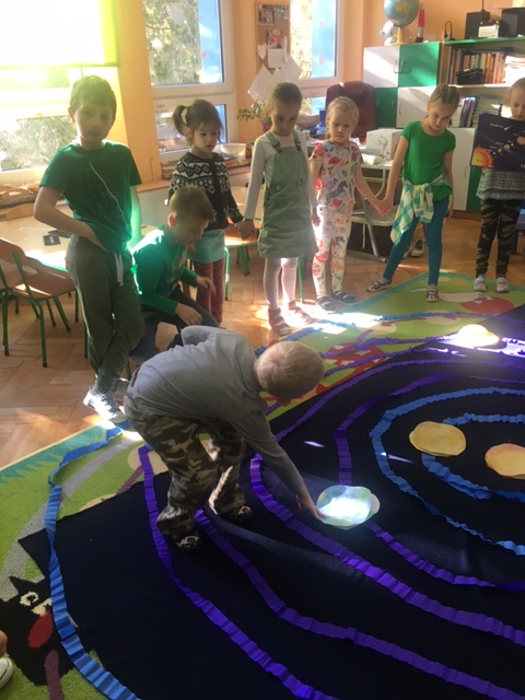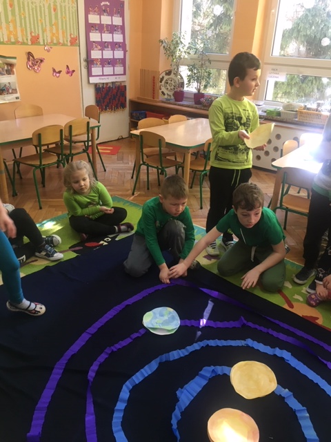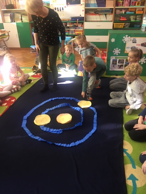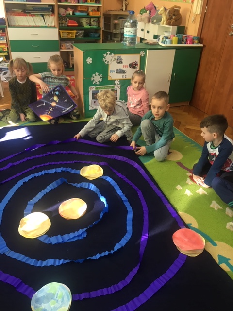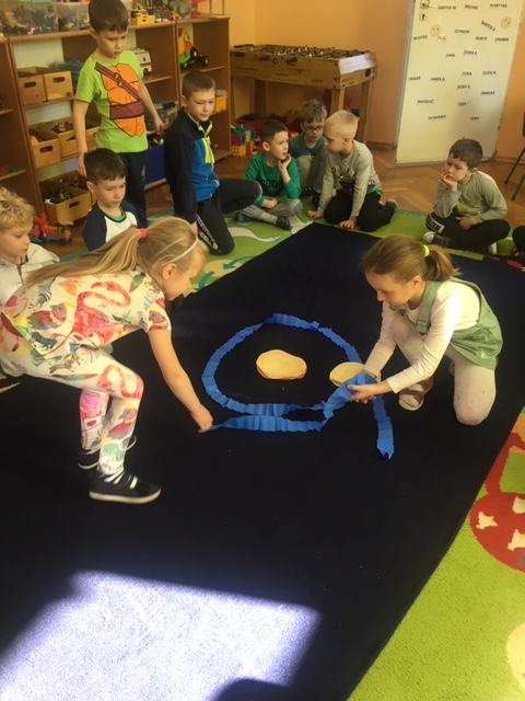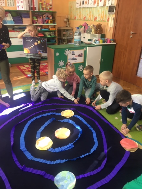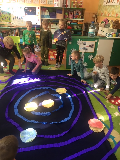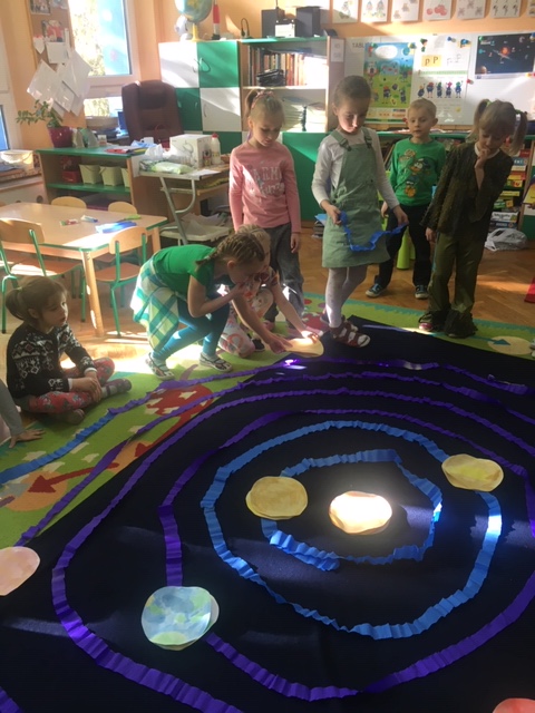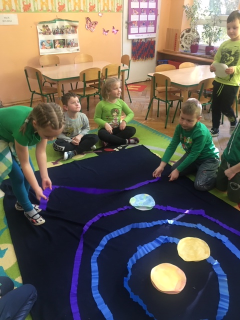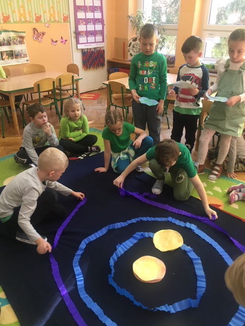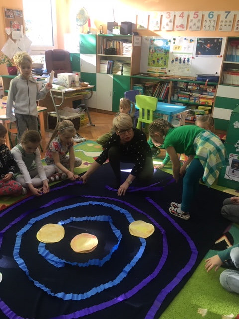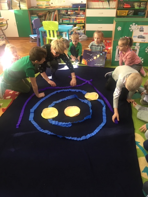 Pszczółki wybrały się w kosmos. Najpierw przygotowały wybraną przez siebie planetę i umieściły ją w odpowiednim miejscu w układzie słonecznym. To była zabawa i nauka!