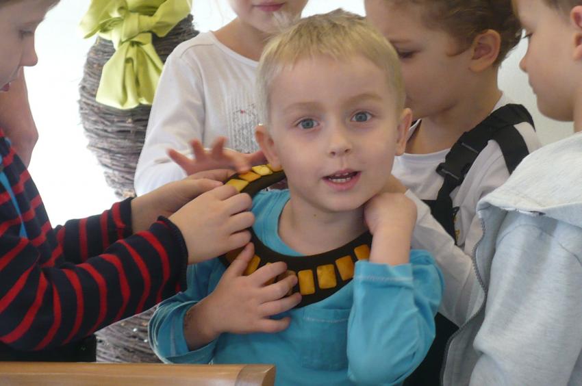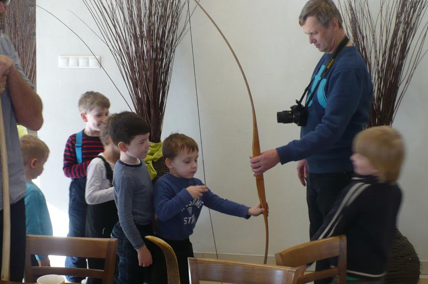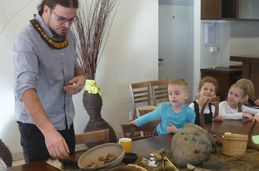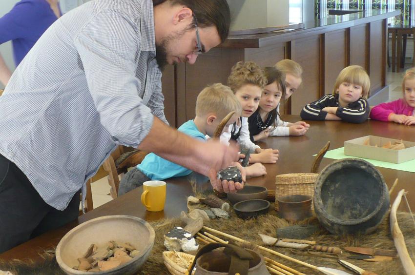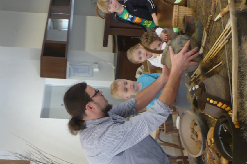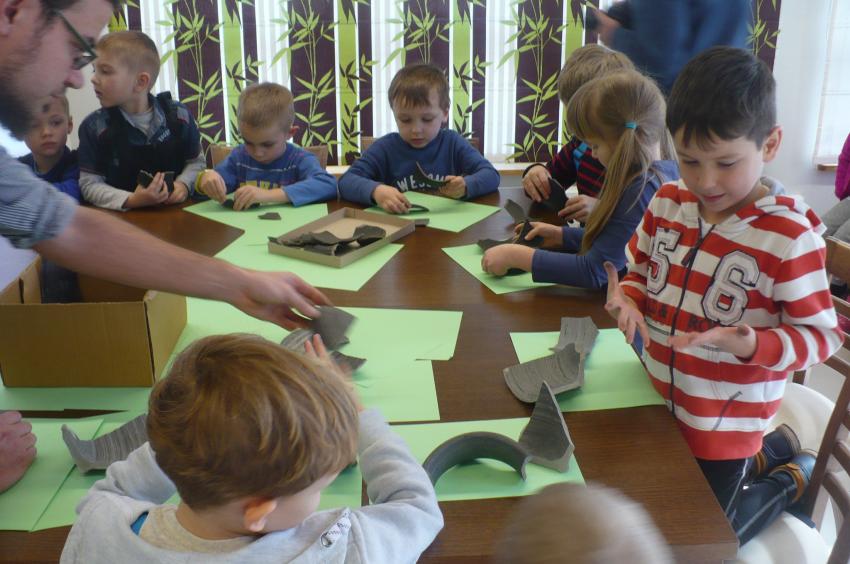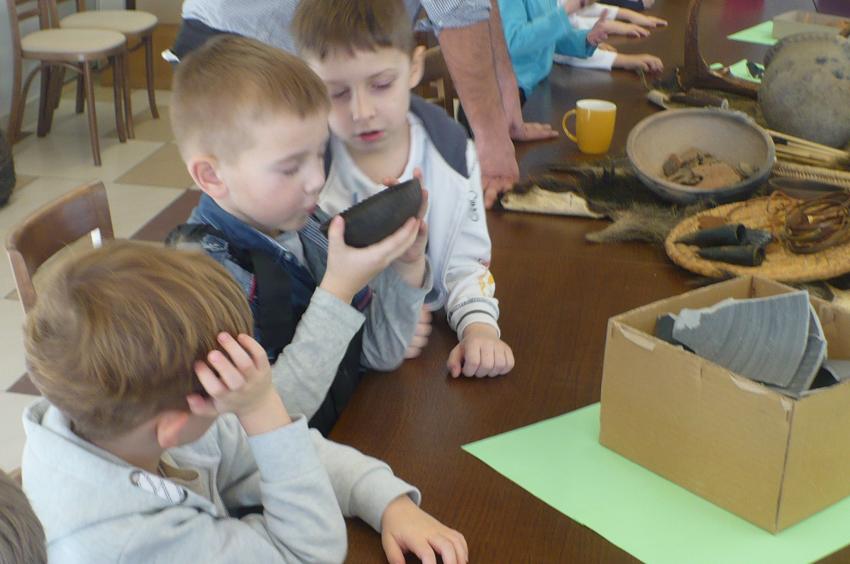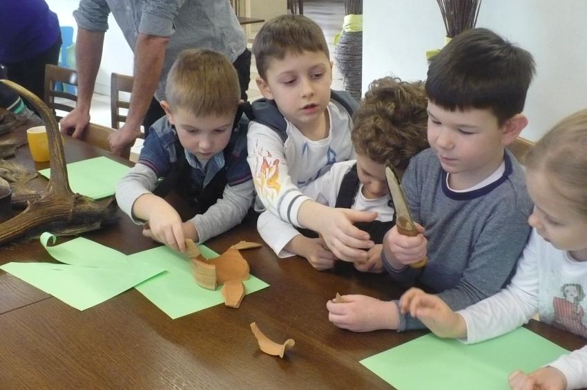 W Światowy Dzień Archeologii wybraliśmy się na wycieczkę do Punktu Usług Turystycznych "Bukowisko" w Supraślu. Tego dnia mieliśmy wyjątkową okazję uczestniczyć w spotkaniu z archeologiem Panem Adamem Wawrusiewiczem. Poznaliśmy zawód archeologa i jego pracę. Cały miniony tydzień poświęciliśmy poznawaniu dinozaurów, dlatego po cichu liczyliśmy na to, że p. Adam podzieli się z nami doświadczeniem wykopania kości dinozaurów. Niestety dinozaurami zajmuje się paleontolog. To małe rozczarowanie zrekompensowała nam możliwość dotknięcia prawdziwych skarbów odkrytych przez arecheologów pochodzących z wykopalisk archeologicznych, także z terenu Powiatu Białostockiego.