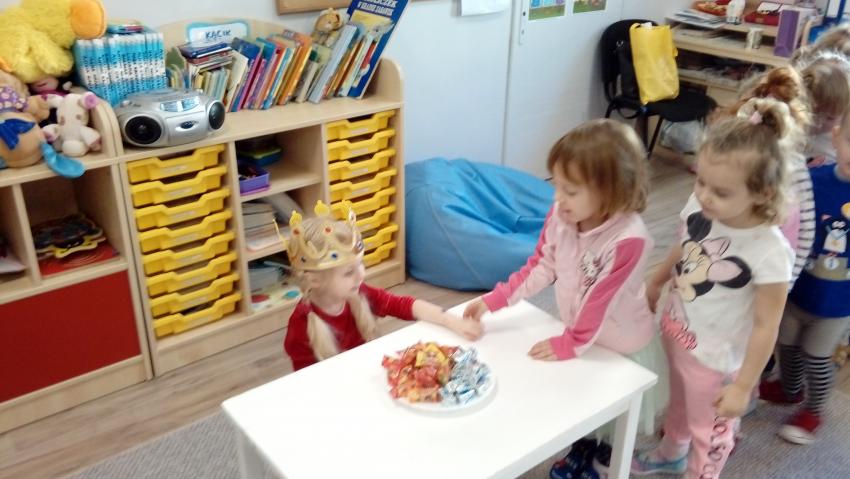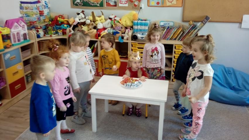 W tym tygodniu obchodziliśmy także urodziny dwóch dziewczynek z naszej grupy Izy i Basi. Było uroczyste odśpiewanie "100 lat" oraz najlepsze życzenia zdrówka i uśmiechu :) Dziewczynki poczęstowały nas cukierkami i ciasteczkami. Było słodko.... Dziękujemy bardzo:)