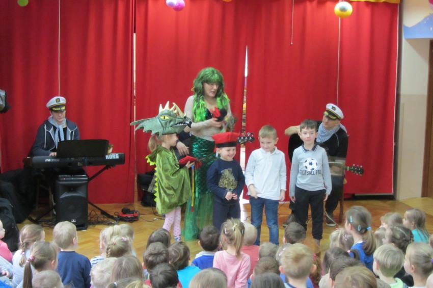 Gościliśmy niedawno artystów z Opery i Filharmonii Podlaskiej w Białymstoku, ze spektaklem pt. " Kto Ty jesteś? Polak mały". Bardzo nam się spodobała ta audycja. Mogliśmy grać różne role przed publicznością i aktywnie uczestniczyć w przedstawieniu muzycznym.
