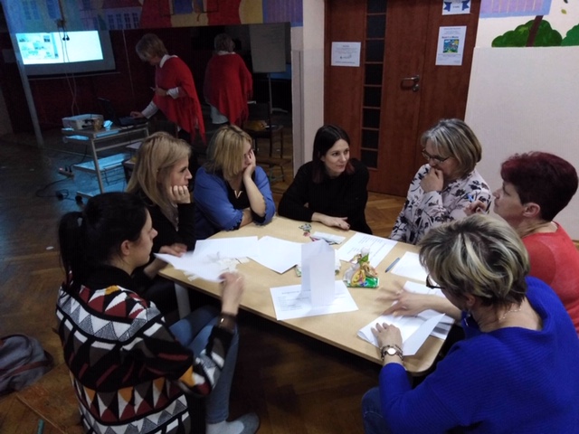 W naszym przedszkolu dbamy też o naszą kadrę pedagogiczną, która cały czas podnosi swoje kwalifikacje. Szkolenia odbywają się również w przedszkolu. Tym razem szkolenie miało na celu " Rozwijanie kompetencji kluczowych w placówce". Podczas szkolenia pracujemy w zespołach i dzielimy się wiedzą.