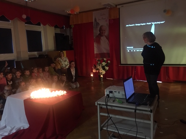 Dzisiaj mija rocznica śmierci naszego patrona Jana Pawła II. Spotkaliśmy się wszyscy aby przypomnieć postać naszego patrona i posłuchać piosenek o nim. Przekazaliśmy też iskierkę miłości.