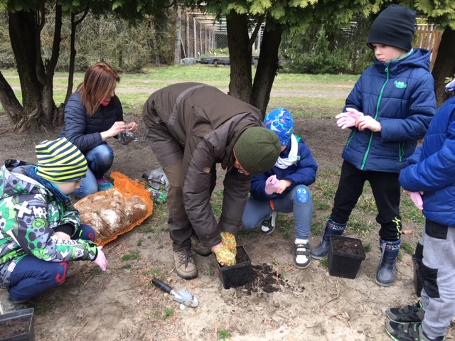 Podczas kolejnej wizyty w Arboretum Pszczółki szukały wiosny w lesie. Oczywiście ją znalazły, mimo że, aura nie była nam sprzyjająca. Ale kwitnące wiosenne kwiaty i kwitnące drzewa zrekompensowały wszystko. Dużo dowiedzieliśmy się na temat kwitnących roślin wiosną. Na koniec kazde dziecko posadziło wiosenny kwiat - irys.Teraz będziemy obserwować swoje roślinki.