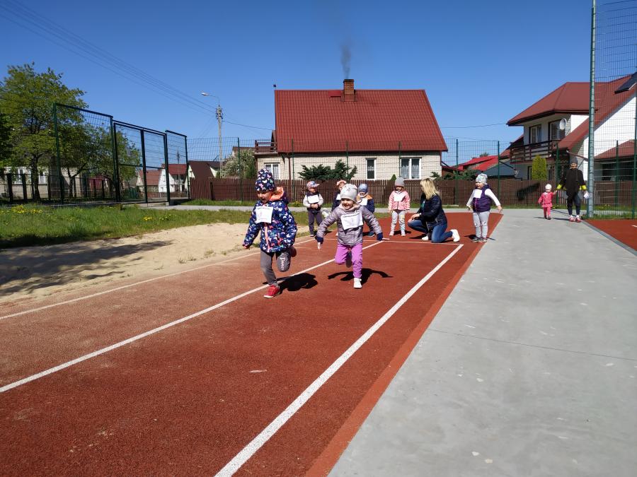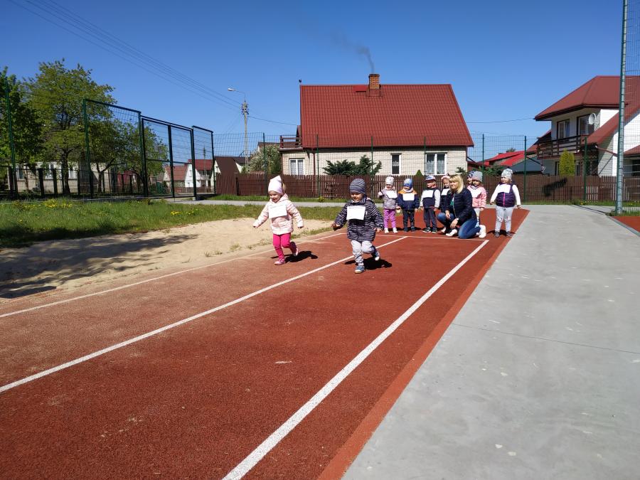 Dzieci z grupy Kaczuszki biegły w maratonie. Wszyscy sie dzielnie spisali:) Były gromkie brawa, medale wręczone przez Panią Dyrektor i dyplomy.