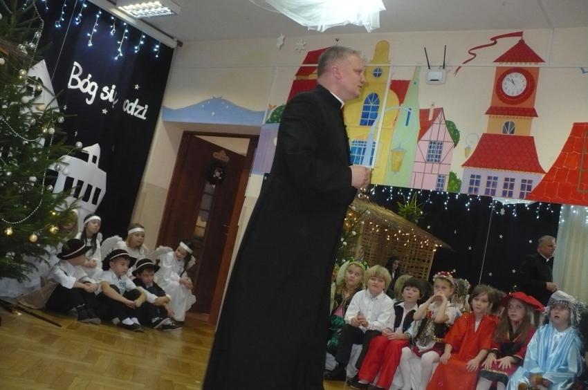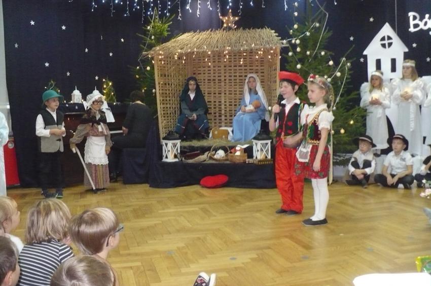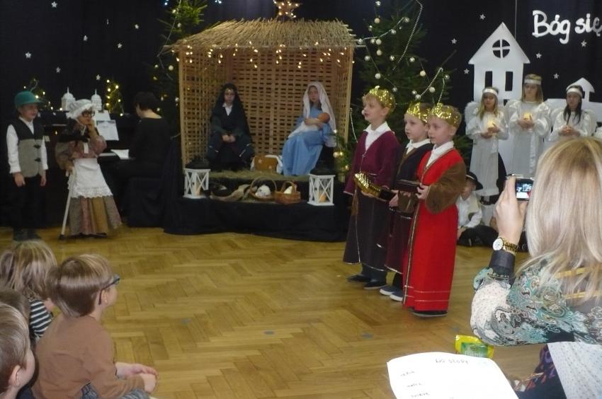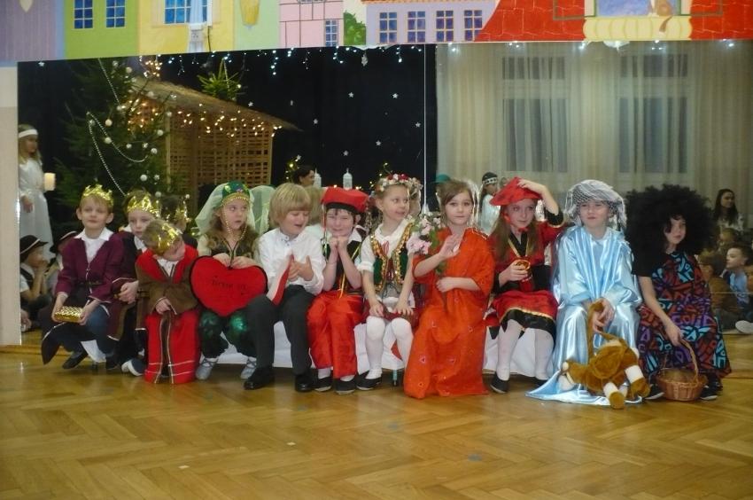 Jako najstarsza grupa mieliśmy zaszczyt przedstawić jasełka przed znakomitą publicznością: przedstawicielami władz Supraśla oraz instytucji oświatowych z naszej gminy, pracownikami przedszkola (również emerytowanymi), naszymi dziadkami oraz rodzicami i oczywiście przed naszymi młodszymi koleżankami i kolegami z przedszkola. To było nie lada wyzwanie, do którego przygotowywaliśmy się dwa miesiące. W nagrodę otrzymaliśmy od p. Urszuli Zdanowicz (emerytowanej nauczycielki) rożek ze słodyczami, gromkie brawa, uściski, buziaki i gratulacje, a efekty naszej pracy pozostały w sercach i na profesjonalnym nagraniu MP4.