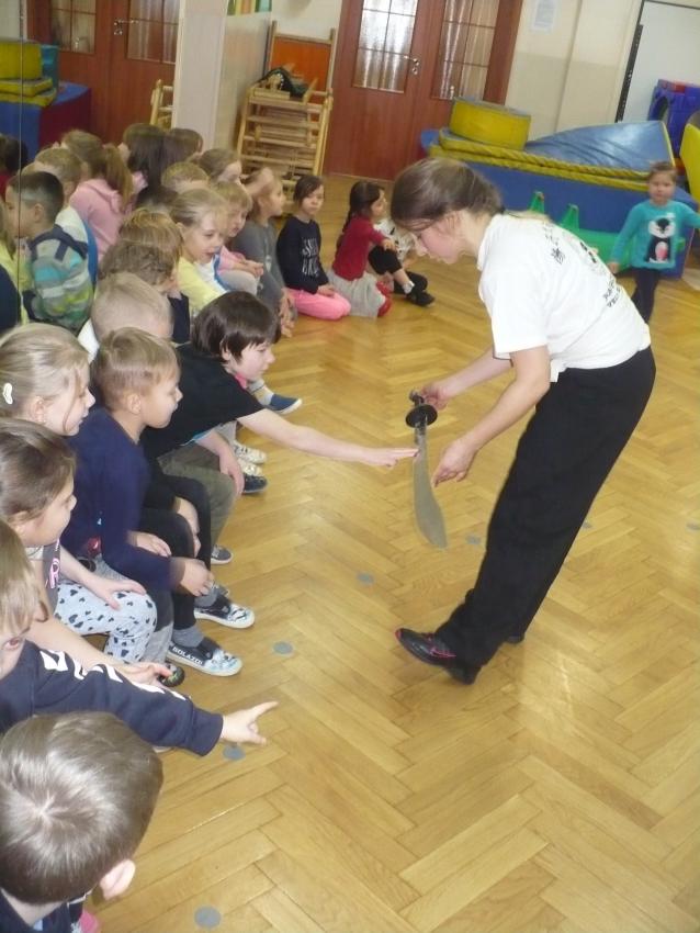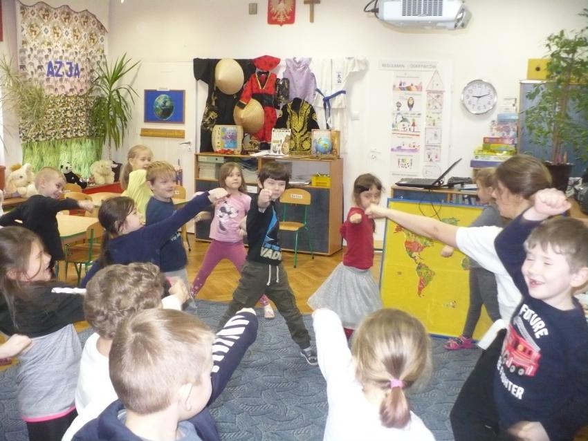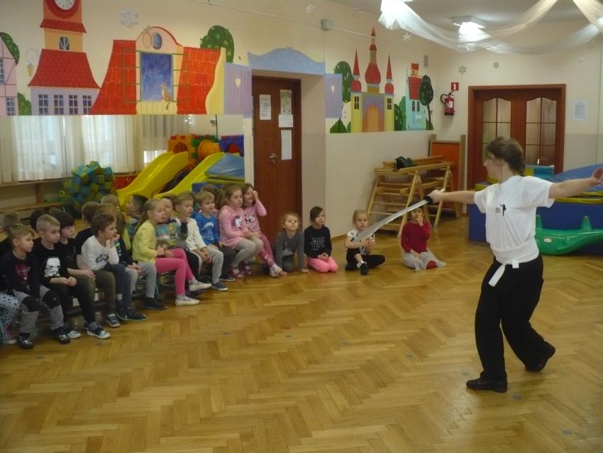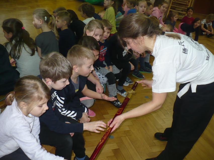 Mamy to szczęcie, że pani Joanna - mama naszej koleżanki Izy od 16 lat trenuje kung-fu. Dzięki temu możemy na żywo zobaczyć chińską sztukę walki, poznać jej główne zasady i pokrótce historię jej powstania.