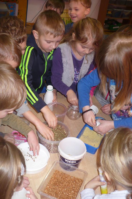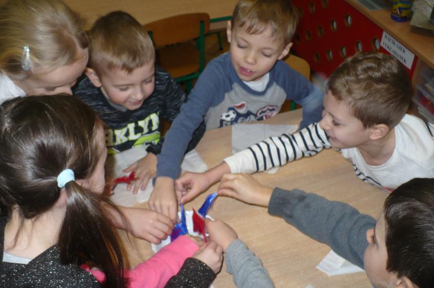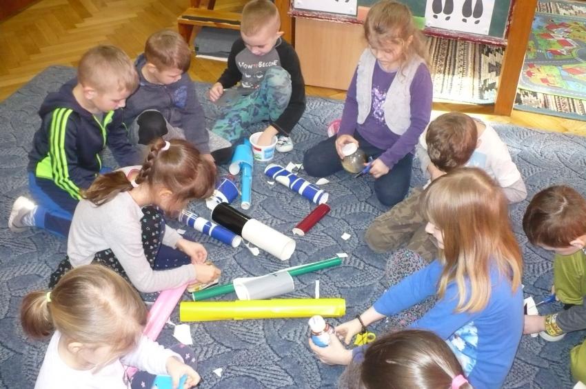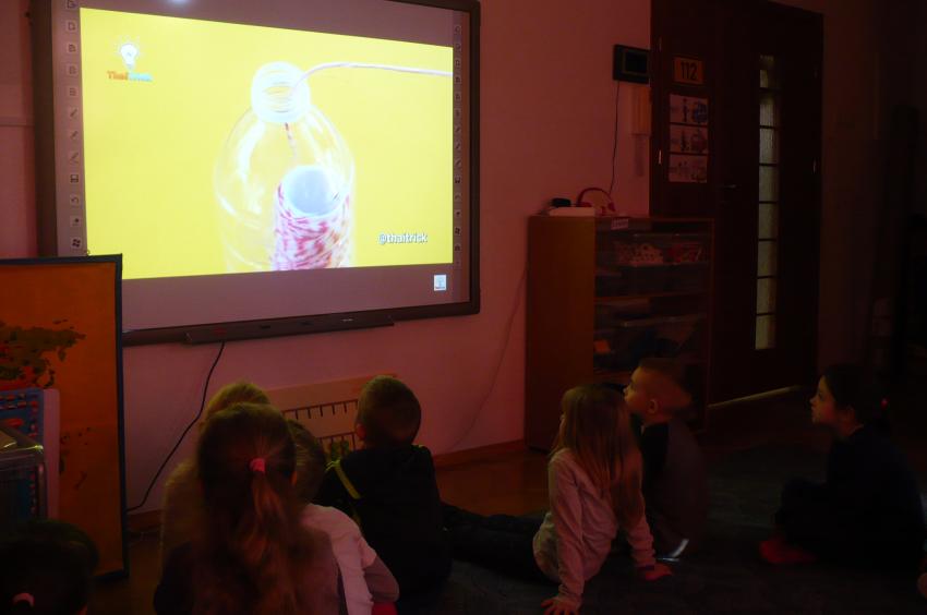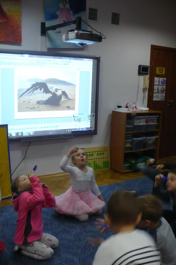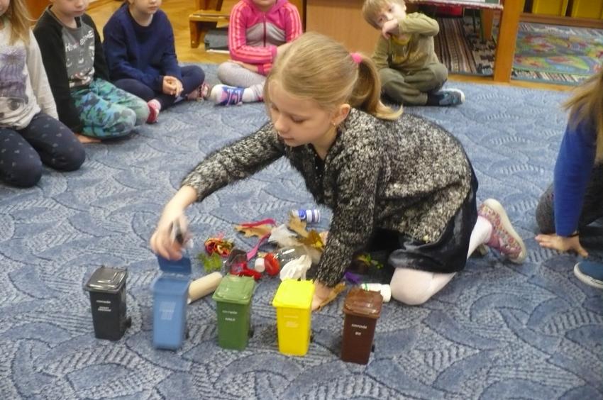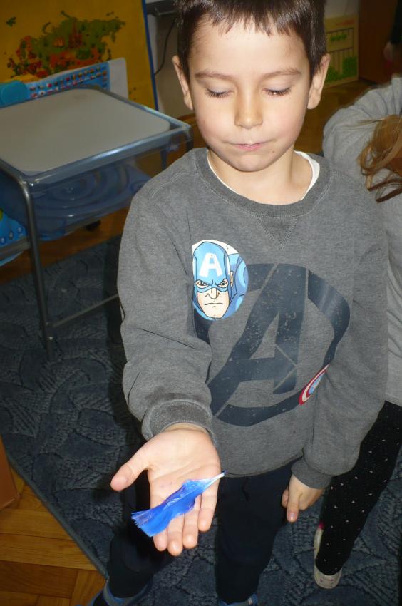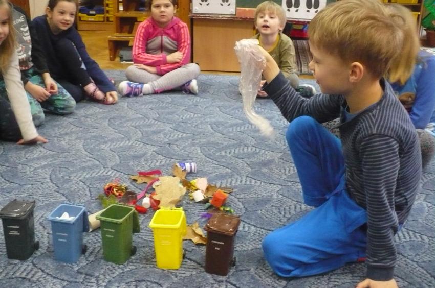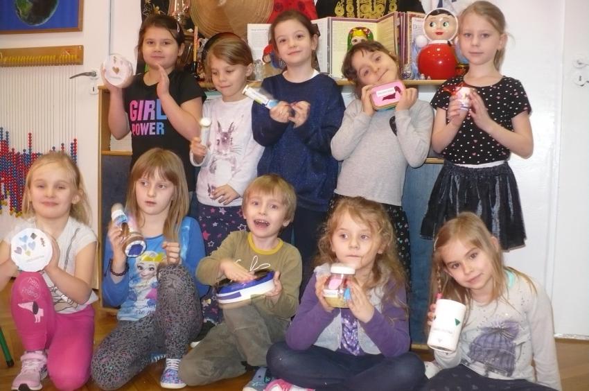 Zdobywamy wiedzę i umiejętności służące ochronie środowiska przyrodniczego. Wiemy, jak segregować śmieci i jakie płyną z tego korzyści dla środowska.Poznaliśmy nowe słowo – upcyckling i zobaczyliśmy na filmie różne sposoby powtórnego wykorzystania plastikowych butelkek. My również postanowiliśmy dać „drugie życie” plastikowym pojemniczkom i zrobiliśmy z nich instrumenty (grzechotki). Wiemy również, jak wielkim zgrożeniem dla zwierząt jest zanieczyszczenie wód. Przeprowadziliśmy doświadczenie na ptasich piórkach i sami przekonaliśmy się, że piórko zabrudzone olejem zmienia swoje właściwości.