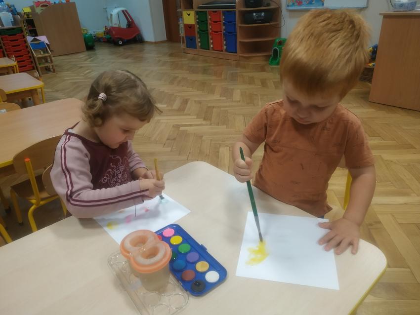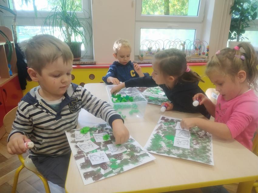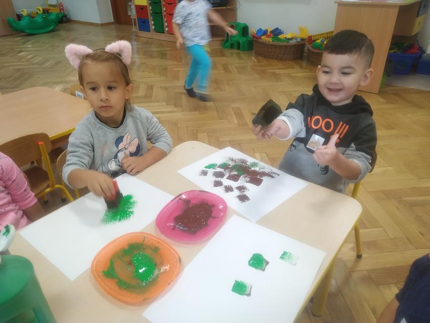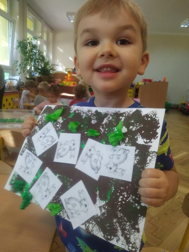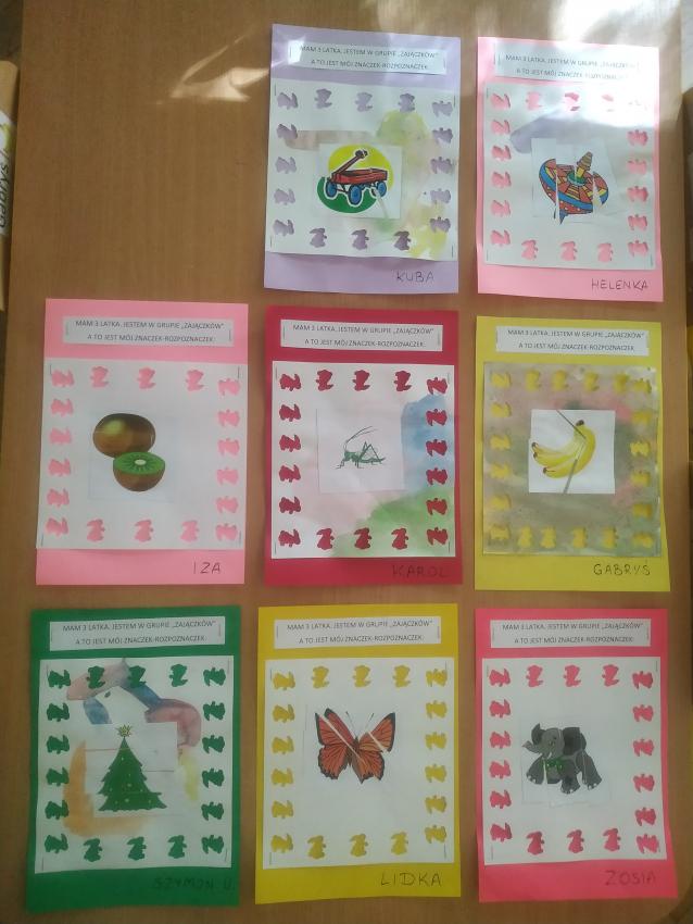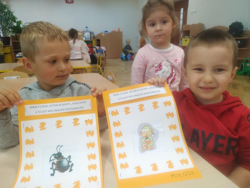W tym tygodniu dowiedzieliśmy się, że należymy do grupy o nazwie „Zajączki”. Nauczyliśmy się wierszyka o zajączkach baraszkujących po ogródku Gosi. Treść wiersza zilustrowaliśmy w dwojaki sposób: zabawą dramową oraz pracą plastyczną. Tydzień był pracowity, bo wybraliśmy, złożyliśmy i ozdobiliśmy nasze znaczki – rozpoznaczki. Nie umiemy jeszcze czytać a dzięki tym znaczkom potrafimy odnaleźć nasze krzesełka i szafeczki w szatni.