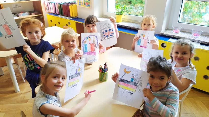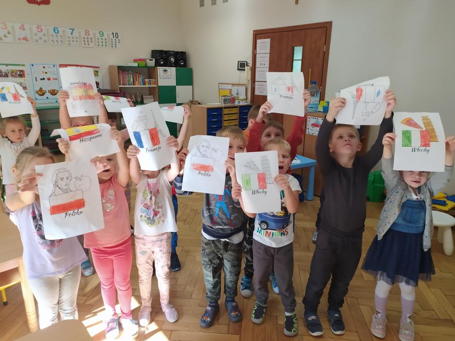 26 września obchodzony jest Europejski Dzień Języków. W związku z tym przedszkolaki, jak przystało na przyszłych poliglotów, poznawały podczas zajęć j. angielskiego odpowiednik "Hello " w innych językach: np. włoskie-Ciao , hiszpańskie-Buenos Dias, francuskie-Bon Jour czy niemieckie-Guten Tag. Kolorowaly przy okazji flagi państw europejskich. Oto wyniki ich starań. Zachęcam do słuchania w domu piosenki, która pomogła dzieciom zapamiętać nowe słowa. Link dostępny jest w zakładce j.angielski na stronie przedszkola. Pozdrawiam Małgorzata Narożna- nauczycielka j.angielskiego