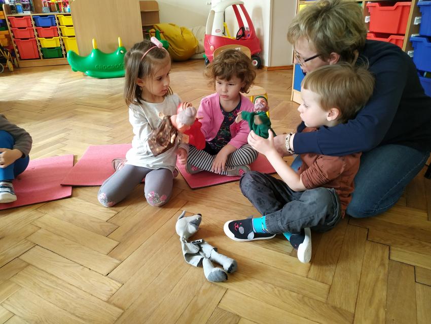 Bajki stały się też pretekstem do rozmów o emocjach i o mądrości w ramach projektu „Magiczna moc bajek” realizowanego przez p. Karolinę.
