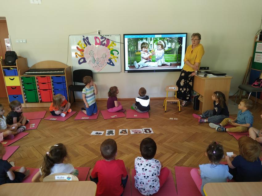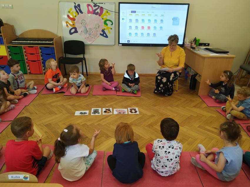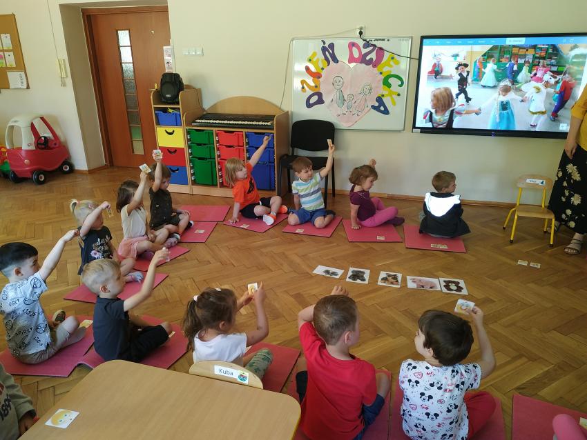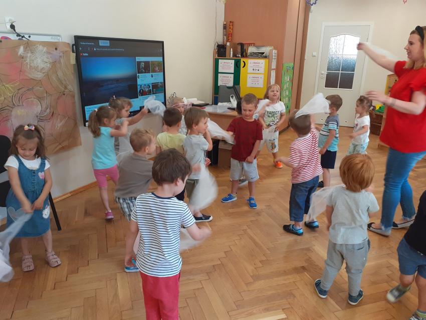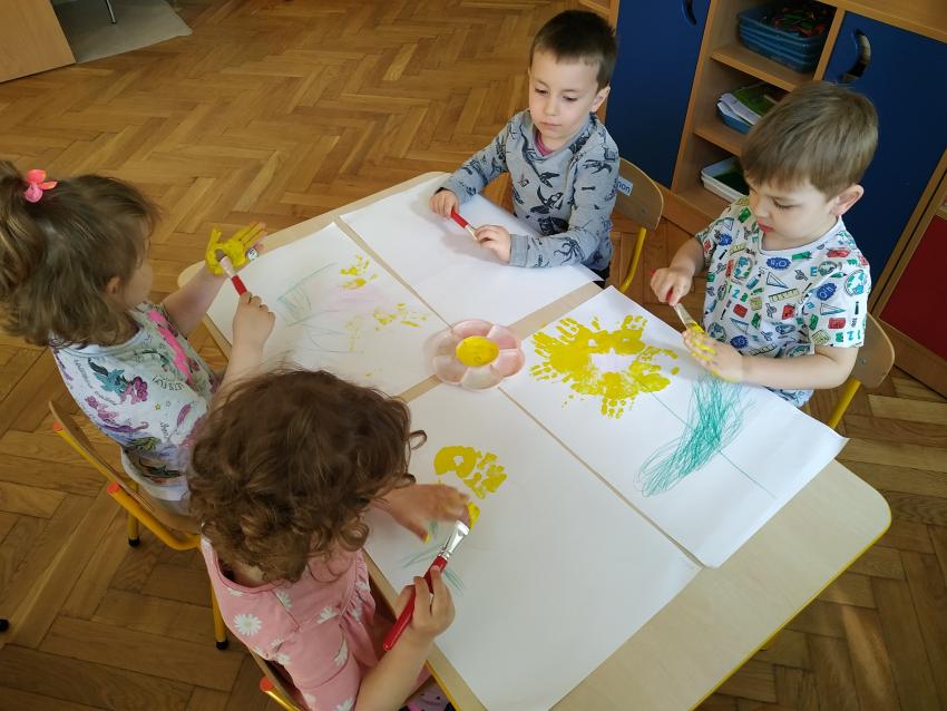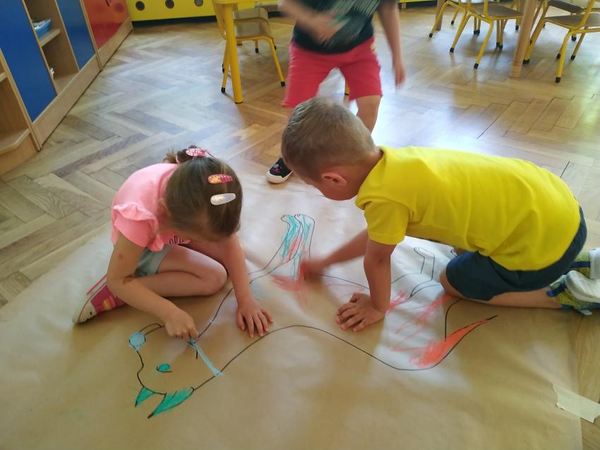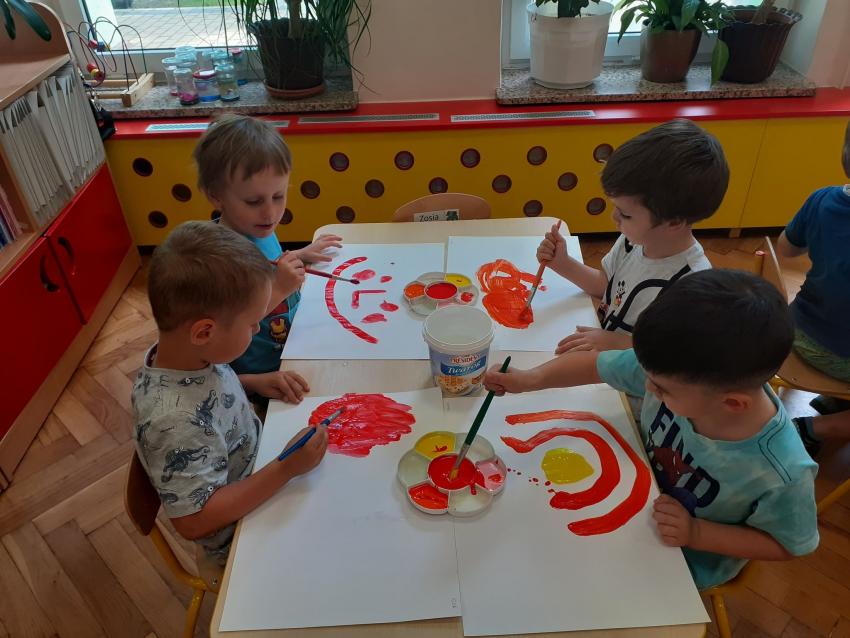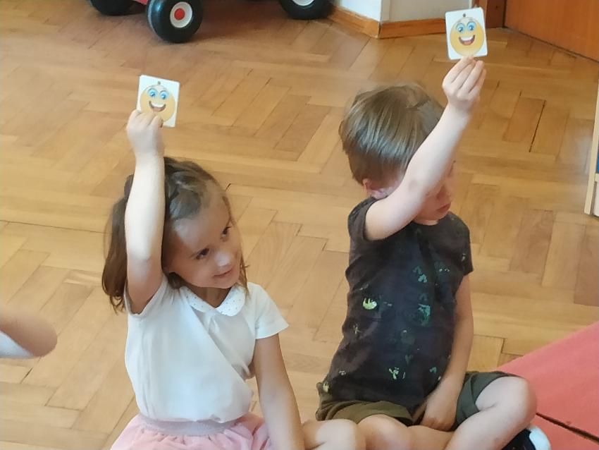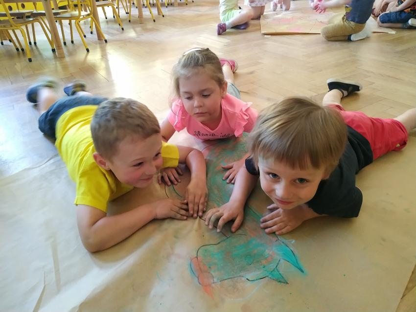 W minionym tygodniu rozmawialiśmy o wrażeniach i uczuciach. Uczyliśmy się rozumieć swoje emocje, mówić o nich i radzić sobie z nimi. Zastanawialiśmy się, w jakich sytuacjach jesteśmy smutni, w jakich weseli, a w jakich zdenerwowani i dlaczego wszyscy przeżywamy takie uczucia. Rozpoznawaliśmy nastrój w muzyce (wesoły, smutny) i próbowaliśmy wyrażać go tańcem i malowaniem. Słuchaliśmy opowiadania Co się wydarzyło w Pluszątkowie Marii Rosińskiej. Staraliśmy się odgadywać, co i z jakich powodów odczuwają bohaterowie opowiadania i osoby przedstawione na zdjęciach, ucząc się w ten sposób dostrzegania, rozpoznawania i określania emocji u innych. Razem uczyliśmy się, jak radzić sobie ze smutkiem i jak można pocieszyć przyjaciela: powiedzieć coś miłego, przytulić. Rozmawialiśmy też o tym, czym jest strach i jak go pokonać. Za radą Małgorzaty Strzałkowskiej z wiersza Przytul stracha odgoniliśmy nasze największe strachy (pająki, psy i las) śmiechem, kolorami i przytuleniem.