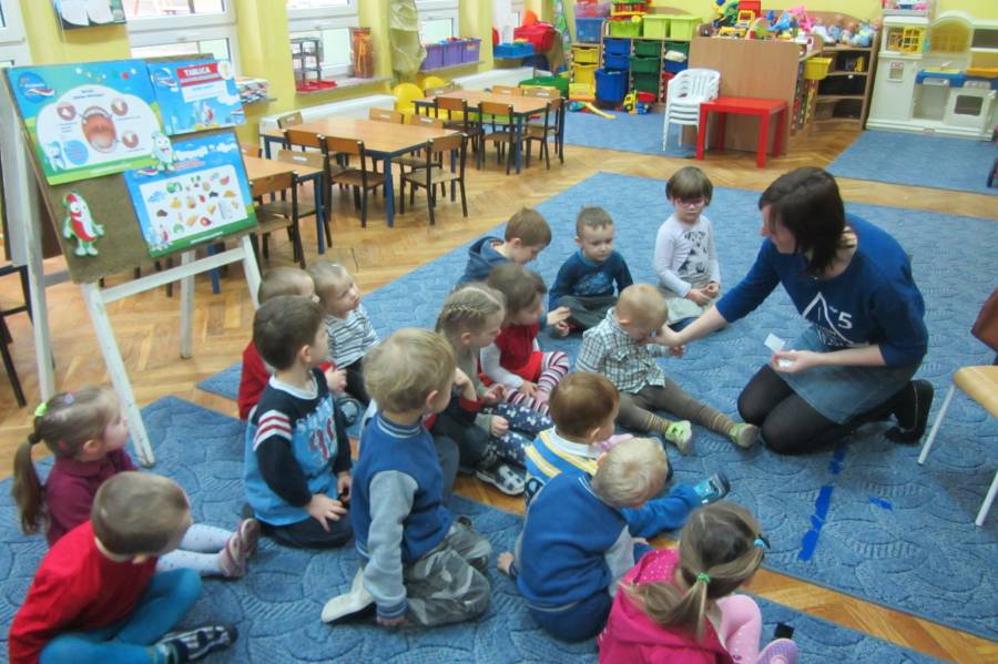 Nasze najmłodsze przedszkolaki, jak również dzieci z pozostałych grup, uczestniczą w ogólnopolskim programie profilaktyki mycia zębów - "Akademia Aquafresh". Pani Iwonka wytłumaczyła maluchom jak skutecznie dbać o zdrowie i czystość zębów, a przedszkolaki obiecały, że chętnie będą to robić! Chyba najmniej zadowoleni z tej obietnicy będą stomatolodzy