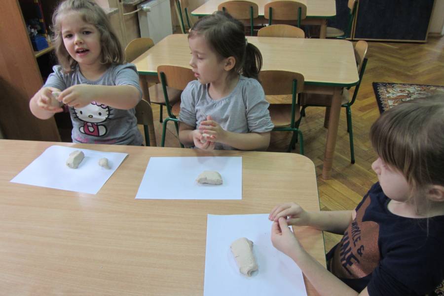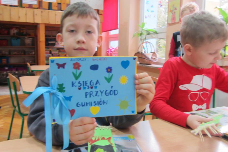 Gumisie - najstarsza grupa przedszkolaków - ten rok szkolny mogą nazwać bardzo pracowitym! W przygotowaniach do opuszczenia murów naszego przedszkola poznają kolejne ciekawostki ze świata. Wiedzą jak należy dbać o książki, potrafią zrobić do niej zakładkę, próbują samodzielnie przeczytać kilka słów. Na innych zajęciach poznają różne oblicza sztuki (malarstwo, architekturę, rzeźbę), próbują swoich sił w rzeźbieniu z gliny, a przy tej okazji poznają też jej właściwości. Jeszcze innym razem poznają zwierzęta egzotyczne, ich zwyczaje, kraj, w którym żyją w naturalnych warunkach. Potrafią ułożyć zagadkę geometryczną dotyczącą tego tematu.