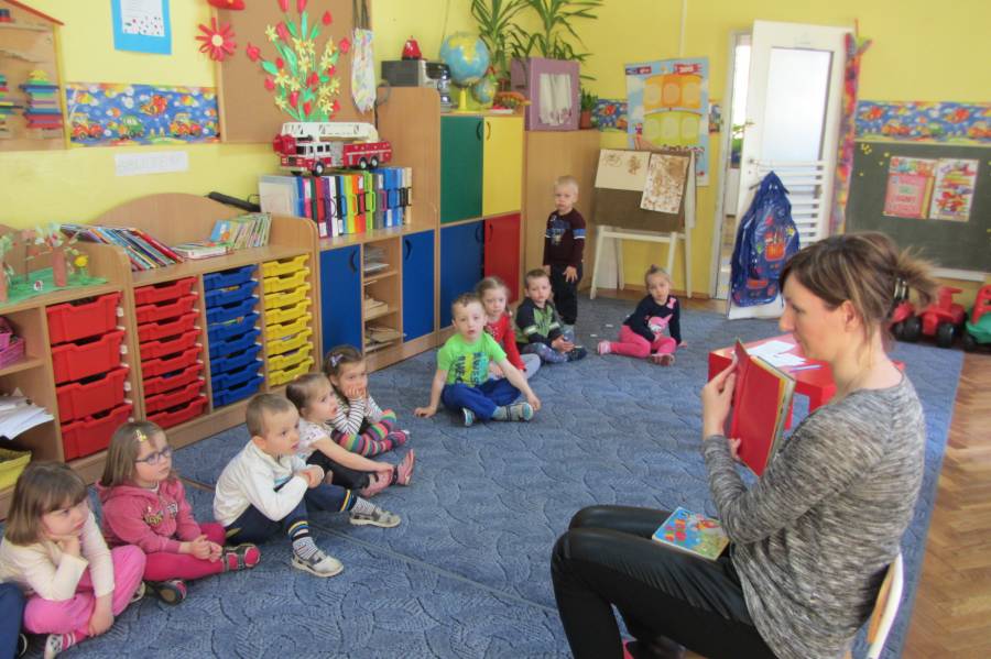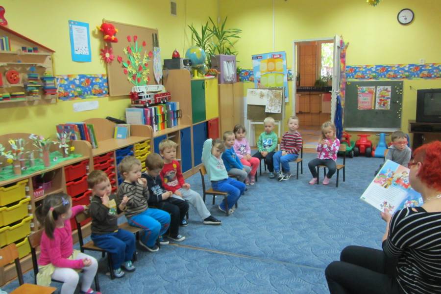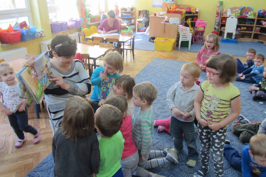 Grupę Krasnoludków odwiedzili również wspaniali goście. Każdy przeczytał ciekawą bajkę. Maluszki chętnie słuchały i razem z czytającym przenosiły się w kolorowy świat fantazji.