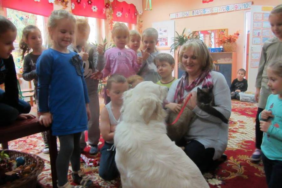 Do grupy Gumisiów zawitali z wizytą czworonożni goście! Odwiedzili ich pies i kot, którzy żyją w wielkiej przyjaźni! A radość dzieci była ogromna!