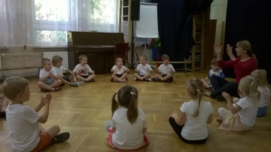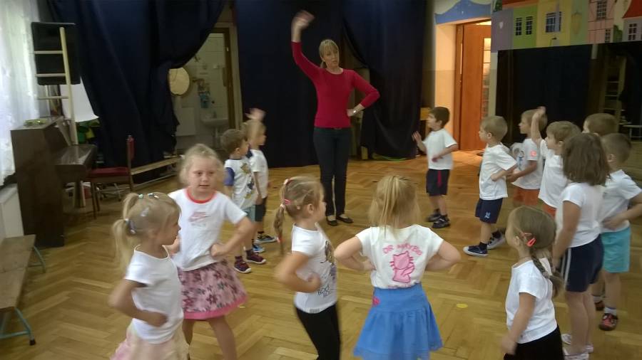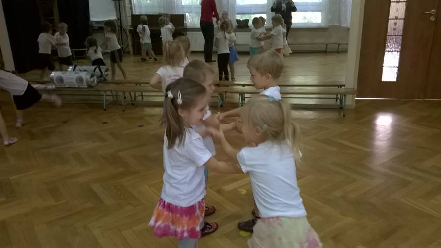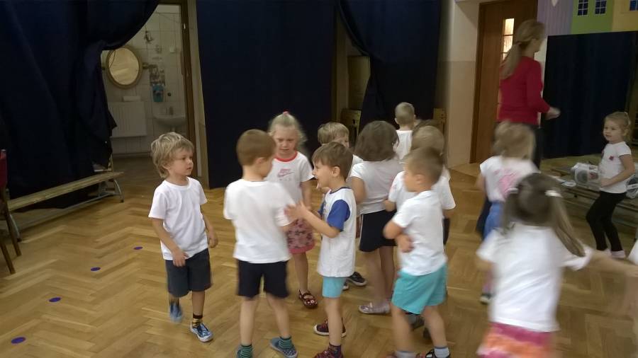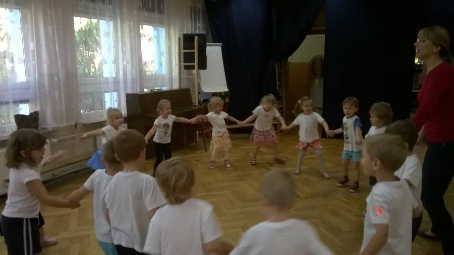 Elfy bardzo chętnie uczestniczą w zajęciach z rytmiki z elementami tańca ludowego. Pani Ela uczy dzieci wielu tańców i zabaw, które podobają się przedszkolakom.