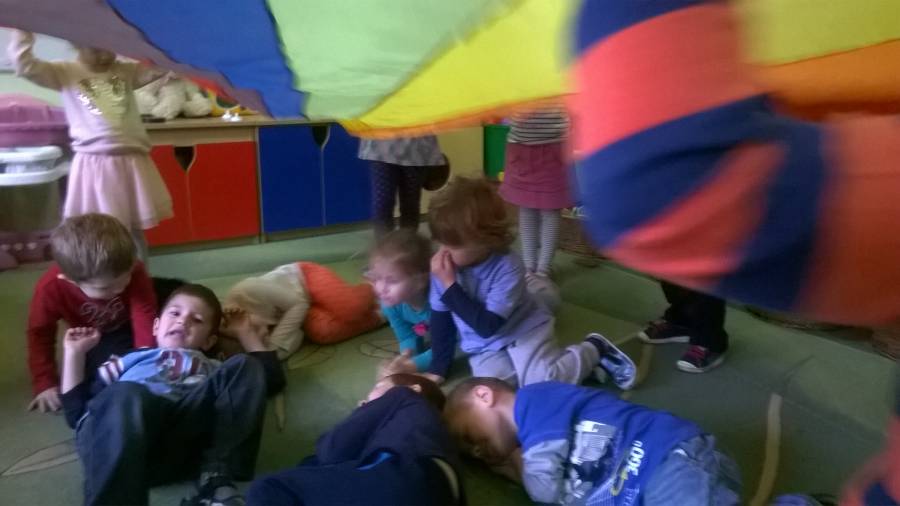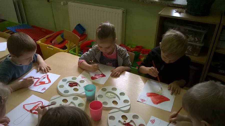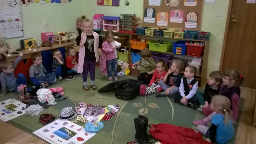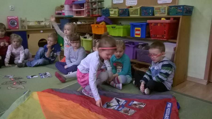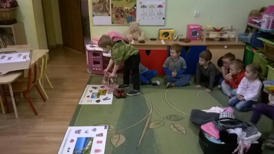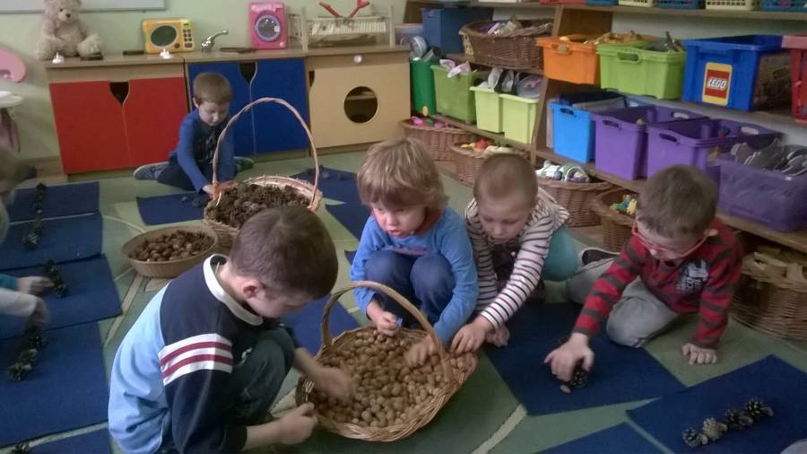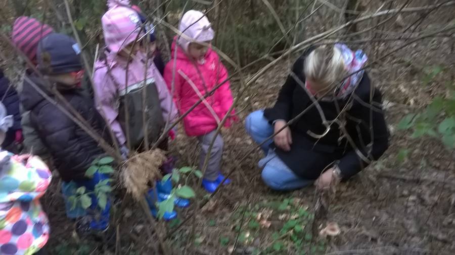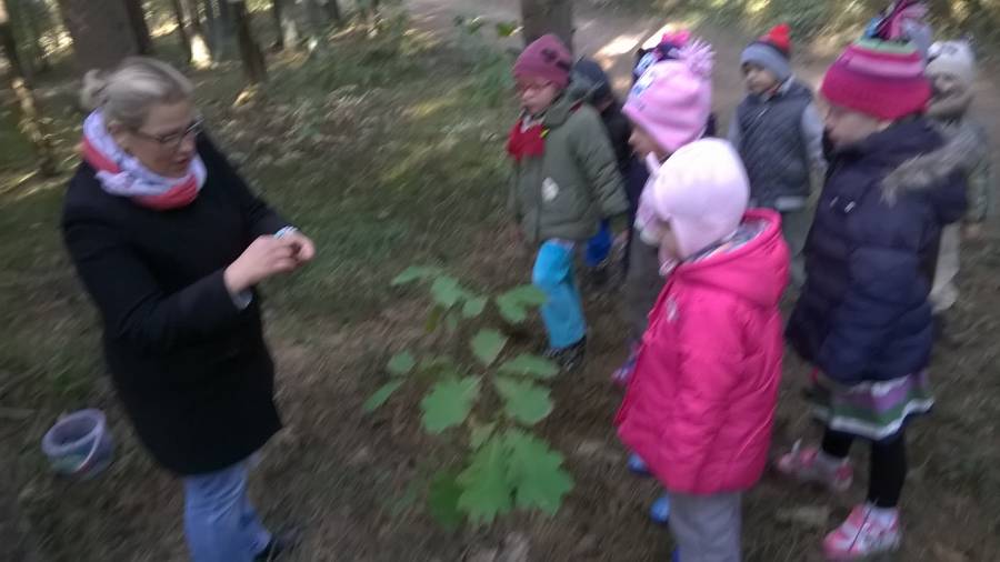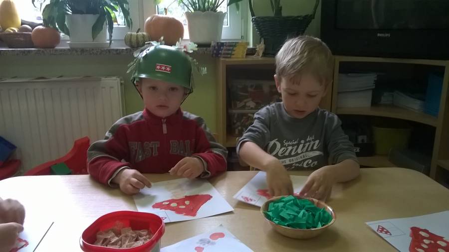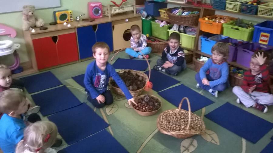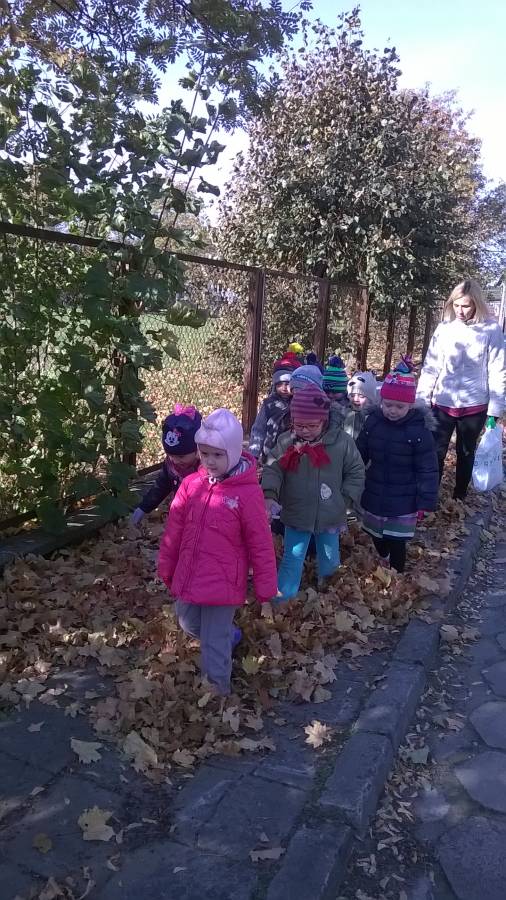 Czterolatki przez kilka tygodni rozmawiały o jednej z pór roku - o jesieni. Dzieci chodziły do lasu. Szukały tam grzybów, owadów, ptaków czy zwierząt przygotowujących się do zimy, o których rozmawiały na zajęciach dydaktycznych. Podziwiały piękno jesiennej przyrody, słuchały szeleszczących liści, wykonywały prace plastyczne, ale również rozmawiały o odpowiednim ubraniu. Jesień to czas intensywnej pracy!!!
