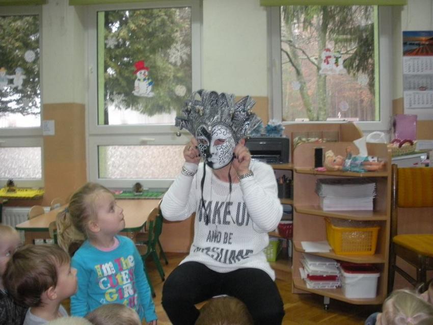 W grupie Muminków karnawał trwa! Dzieci wiedzą, że w karnawale wszyscy się bawią, chodzą na bale, wkładają piękne stroje, czasami też maski! Muminki same ozdabiały własne maski karnawałowe, ale najbardziej podobała im się maska wenecka!
