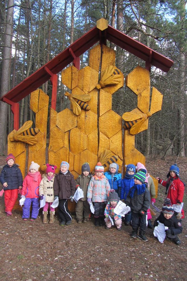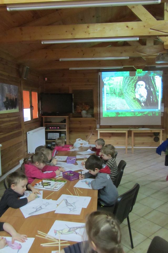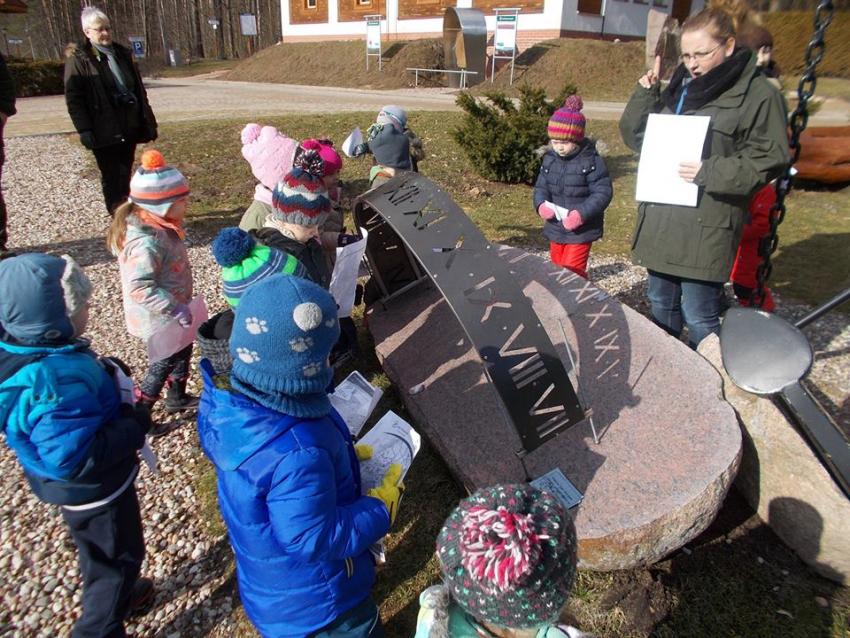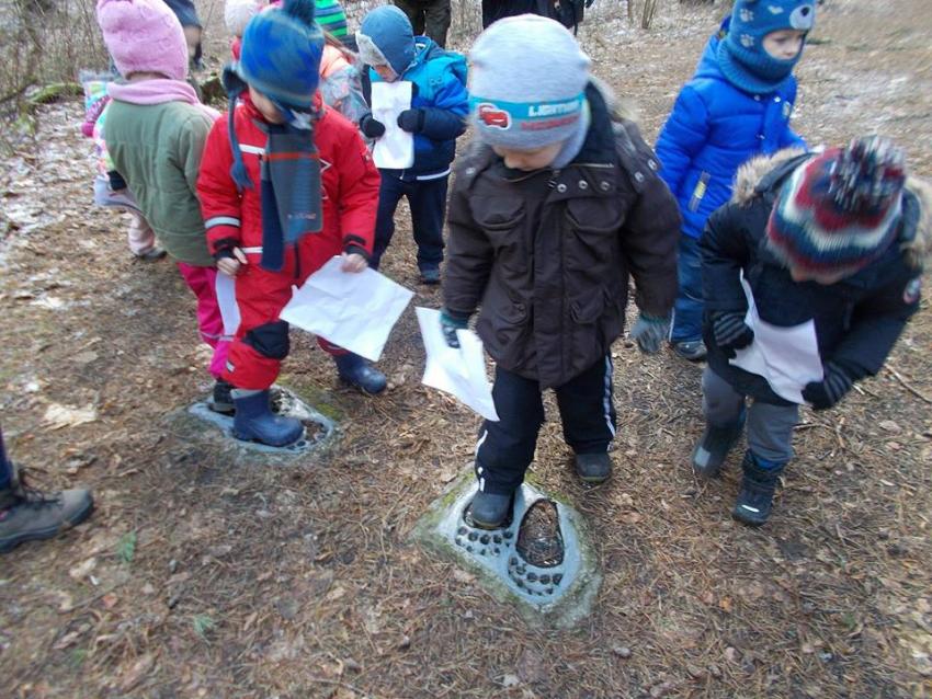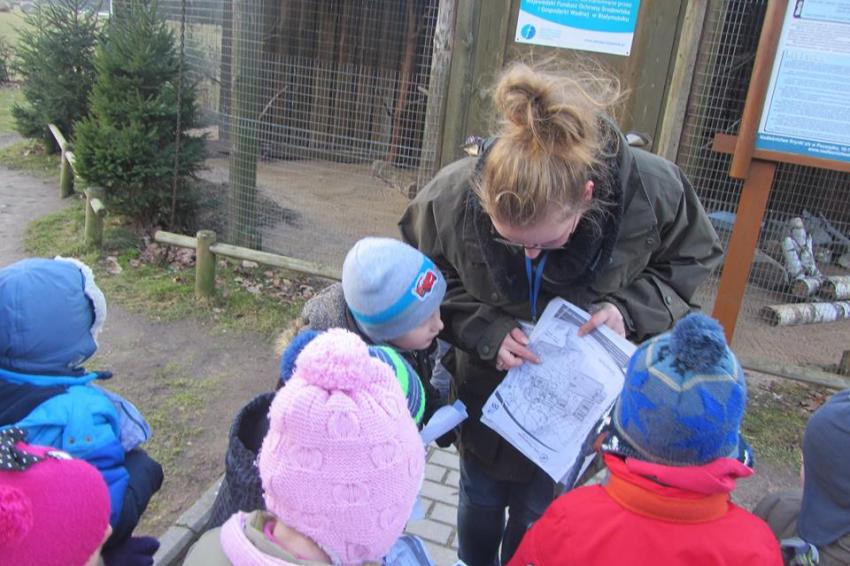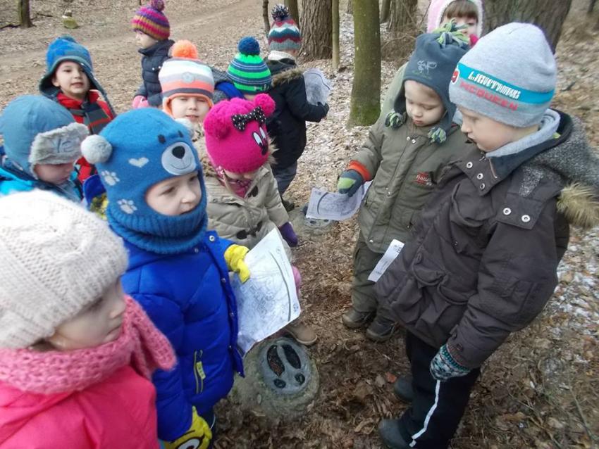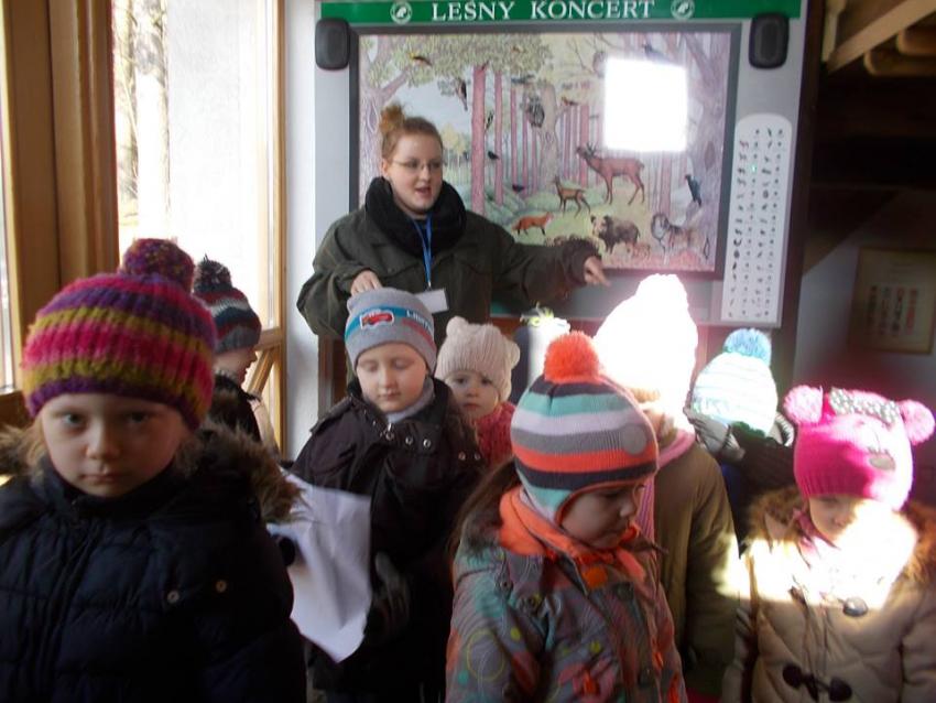 W dniu 25.02.2016 zajęcia w ramach Innowacji pedagogicznej "Leśne ludki" odbyły się w Nadleśnictwie Krynki – w Poczopku. Przedszkolaki poprzez zabawę, gry, zagadki, obserwację zdobywały wiedzę dotyczącą zwierząt leśnych, a w szczególności ptaków. Rozróżniały ich po odgłosach – dzieci wzięły udział w słuchaniu Leśnego Koncertu. Zwiedziły Galerię Na Skraju Puszczy, gdzie oglądały i poznawały zwierzęta leśne. Dowiedziały się, w jaki sposób można mierzyć czas, poznały trzy rodzaje zegarów: dendrologiczny, równikowy i analematyczny. Podczas poszukiwania skarbów w Parku Megalitów składały życzenia przy żabie Bufosławie oraz przechodziły przez Bramę Życzeń. Czas poszukiwania skarbów był bardzo wytężoną pracą, dzieci odczytując swoje mapy szukały miejsc, w których zostały ukryte niespodzianki.