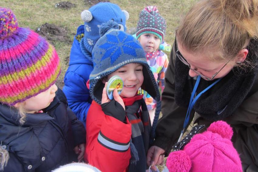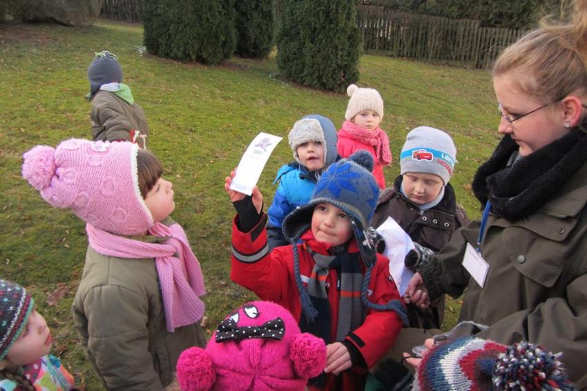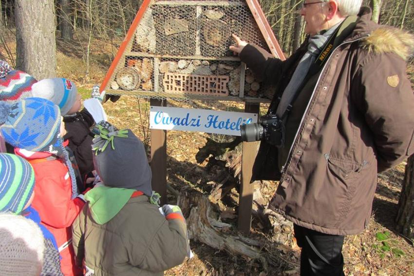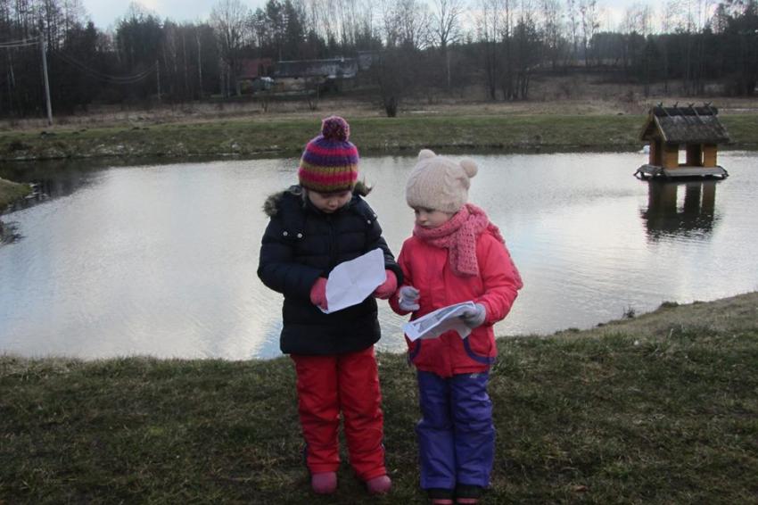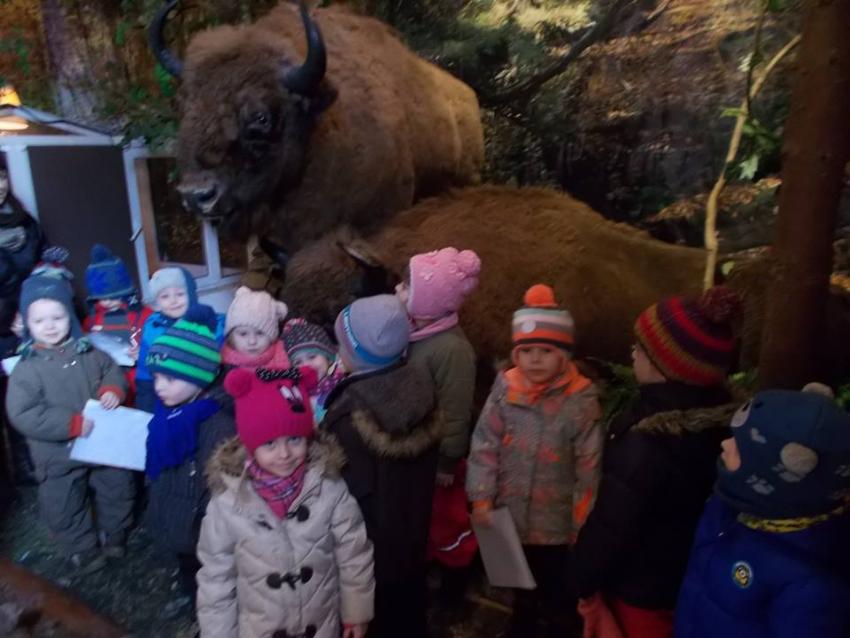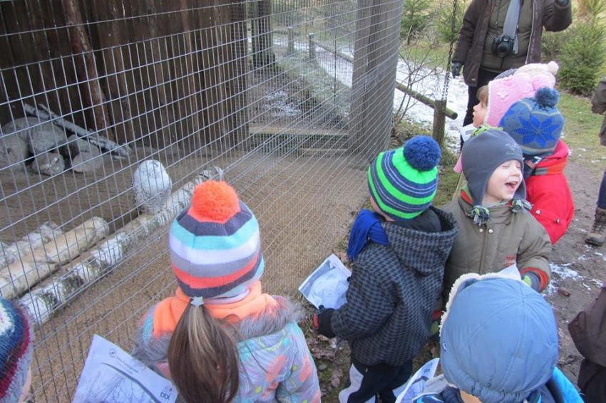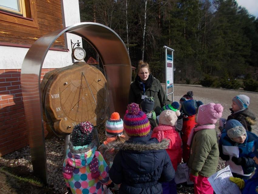 W dniu 25.02.2016 zajęcia w ramach Innowacji pedagogicznej "Leśne ludki" odbyły się w Nadleśnictwie Krynki – w Poczopku. Przedszkolaki poprzez zabawę, gry, zagadki, obserwację zdobywały wiedzę dotyczącą zwierząt leśnych, a w szczególności ptaków. Rozróżniały ich po odgłosach – dzieci wzięły udział w słuchaniu Leśnego Koncertu. Zwiedziły Galerię Na Skraju Puszczy, gdzie oglądały i poznawały zwierzęta leśne. Dowiedziały się, w jaki sposób można mierzyć czas, poznały trzy rodzaje zegarów: dendrologiczny, równikowy i analematyczny. Podczas poszukiwania skarbów w Parku Megalitów składały życzenia przy żabie Bufosławie oraz przechodziły przez Bramę Życzeń. Czas poszukiwania skarbów był bardzo wytężoną pracą, dzieci odczytując swoje mapy szukały miejsc, w których zostały ukryte niespodzianki.
