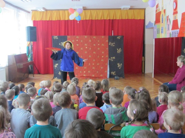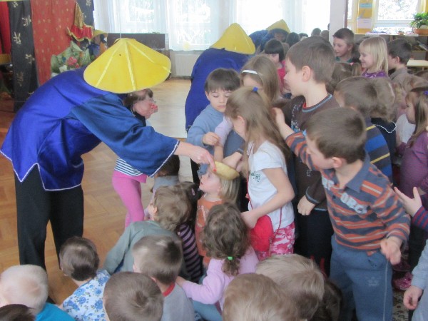 20 marca w naszym przedszkolu odbyło się przedstawienie dla dzieci „Ogród tysiąca piwonii” w wykonaniu aktorów z Teatru Arkadia. Trzech podróżników poszukuje słynnego ogrodu tysiąca piwonii. Wiedzą, że znajduje się on na wschodzie - na skraju tęczy. Docierają do Chin, gdzie spotka ich wiele ciekawych przygód. Spektakl dla dzieci, oparty na starej chińskiej baśni z morałem, która porusza problem walki dobra ze złem. Pokazuje, iż dobro i uczciwość zawsze zwyciężają.
