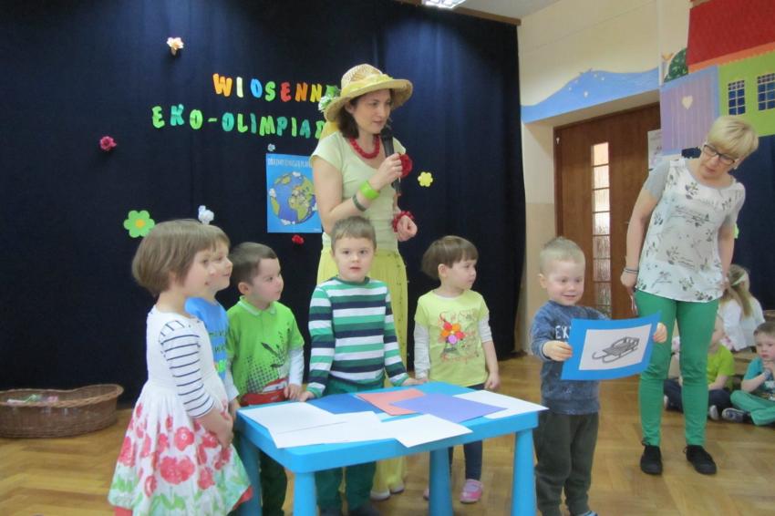 W naszym przedszkolu dzieci bawiły się na balu pt. "Wiosenna eko-olimpiada". Pani Wiosna wraz z pomocnikami przygotowała uczestnikom różne zadania - zarówno o tematyce wiosennej, jak i ekologicznej. Przedszkolaki nie tylko udowodniły, że mają mądre główki, ale także sprytne ręce - zbudowały Pani Wiośnie piękne zamki, zrobiły korale, tańczyły i śpiewały radosne piosenki. Kiedy nadszedł czas pożegnania, każde dziecko otrzymało od pań prowadzących słodkie upominki!