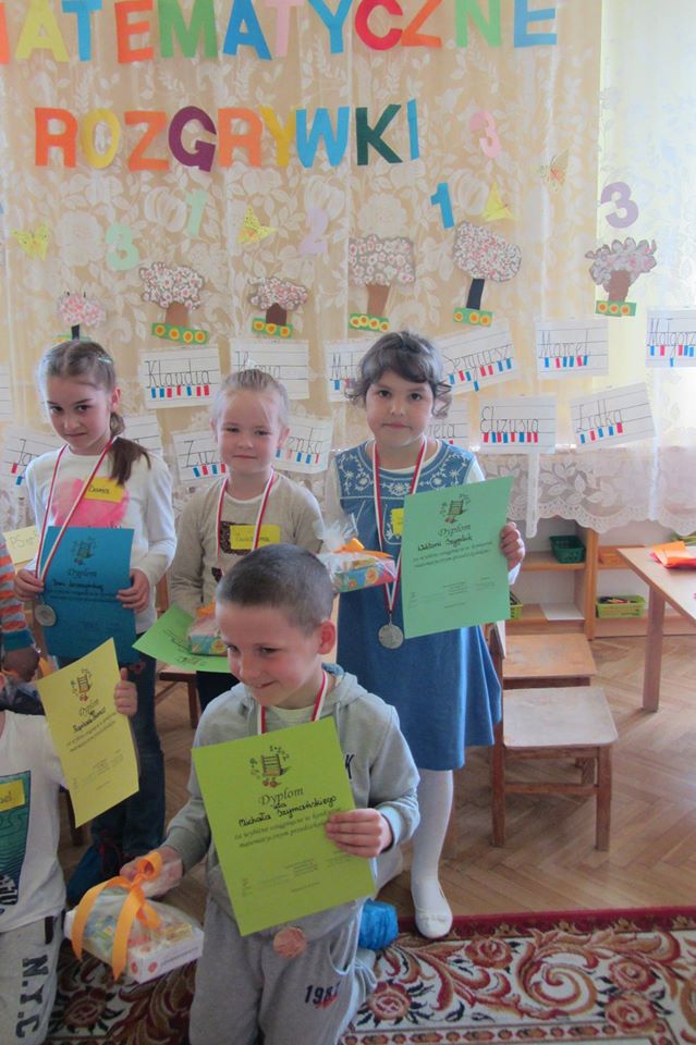 Dnia 17.05.2016 roku dzieci z Przedszkola z Oddziałami Integracyjnymi im. Jana Pawła II w Supraślu - z grupy 5-latków - brały udział w konkursie wiedzy matematycznej organizowanym przez Przedszkole Samorządowe na 4 w Białymstoku. Nasze przedszkole reprezentowały dwie dziewczynki Wiktoria i Zuzia z grupy „Gumisie” pani Małgorzaty Szypluk i pani Wiesławy Chorąży. Sześć grup rywalizowało ze sobą w 2-osobowych zespołach. Liczyła się tu współpraca całej drużyny oraz umiejętności matematyczne. Za bardzo wysoki poziom umiejętności matematycznych dzieci otrzymały medale, dyplomy oraz nagrody.