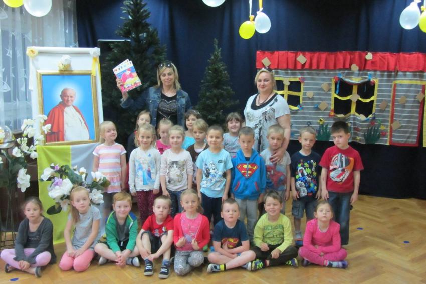 Czwarta rocznica nadania imienia Jana Pawła II naszej placówki oraz przedstawienie dzieci z grupy "Pszczółki" pt."Czerwony Kapturek".