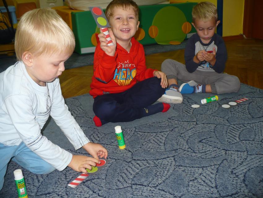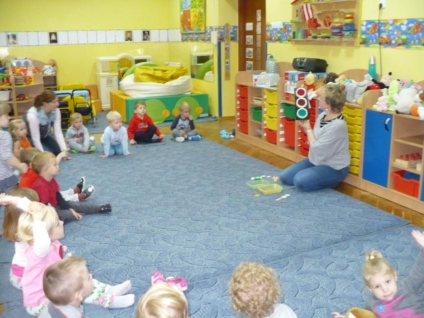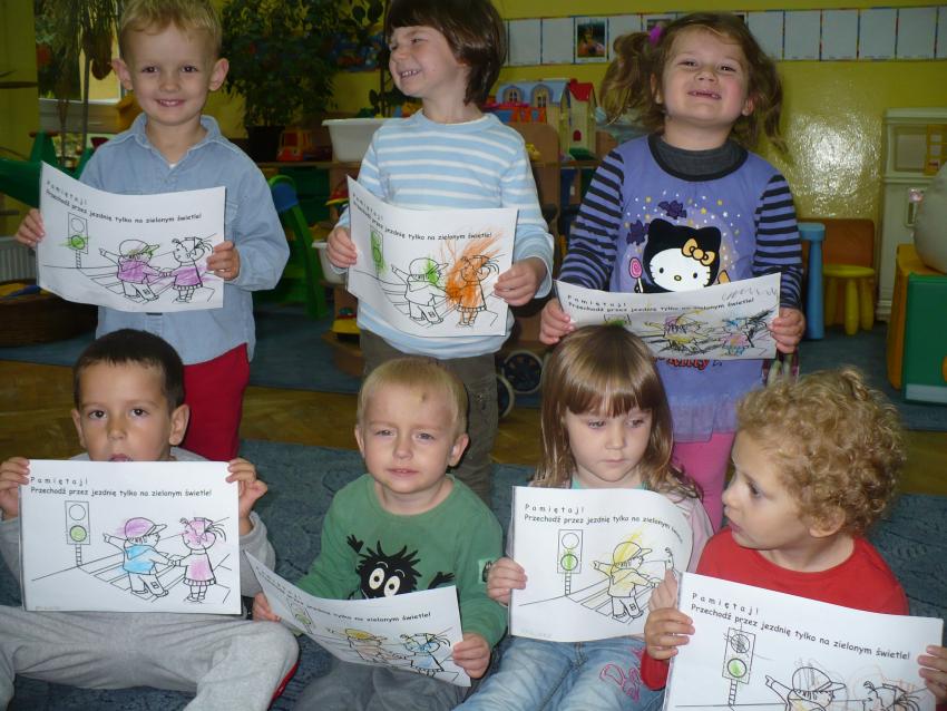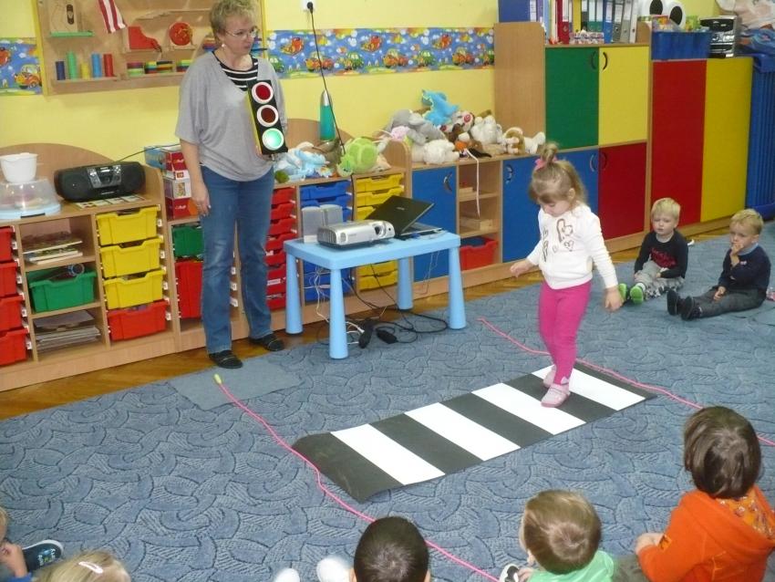 W zasady ruchu drogowego Krasnoludki wprowadził oczywiście krasnoludek – Tadek. Wytłumaczył, jak bezpiecznie przejść przez ulicę, co oznaczają poszczególne światła sygnalizatora, jak wygląda „zebra”. Mądre przedszkolaki przez cały tydzień praktycznie utrwalały zdobytą wiedzę i to z sukcesem, bo każdy z nich zdał egzamin praktyczny z przechodzenia przez jezdnię i otrzymał odznakę bezpiecznego przedszkolaka.