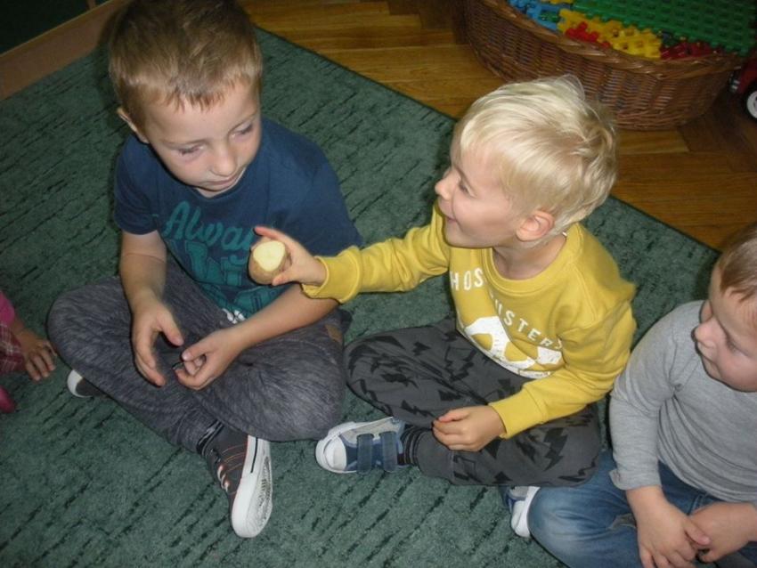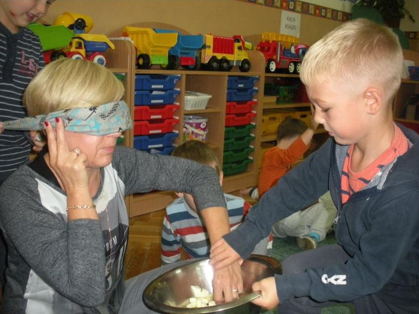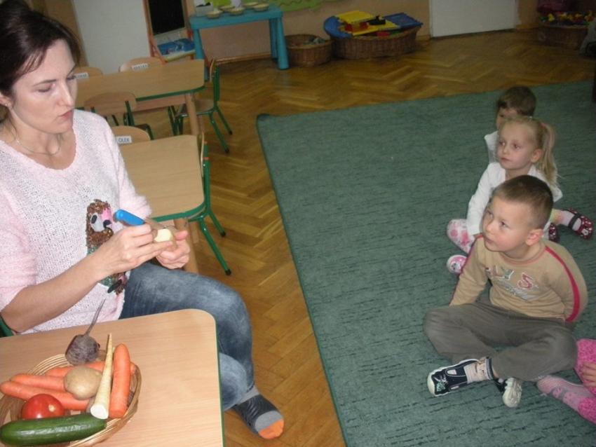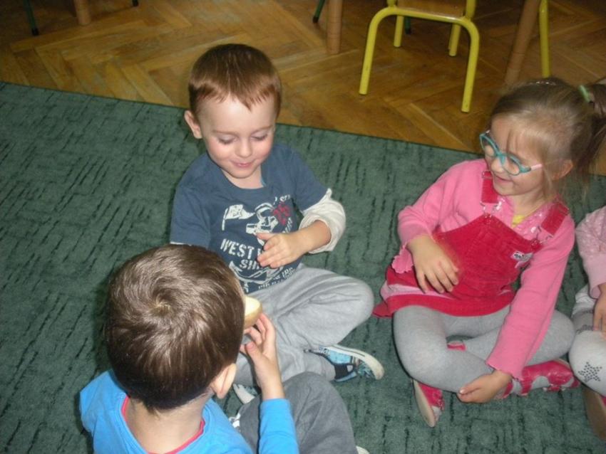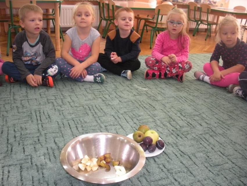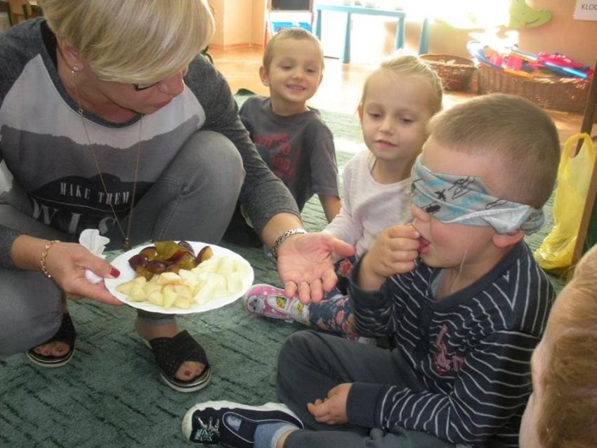 "Kto je owoce i warzywa, ten zazwyczaj zdrowy bywa"! Wiedzą o tym Muminki, rozpoznają też owoce po smaku a warzywa po zapachu. Chętnie wykonywały stemple warzywne i uczestniczyły w zabawach badawczych.