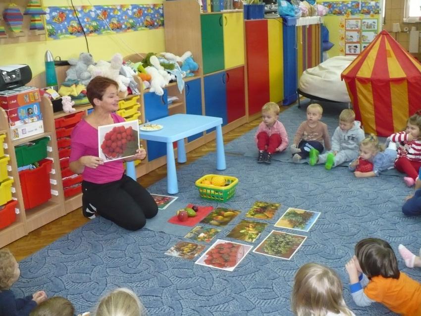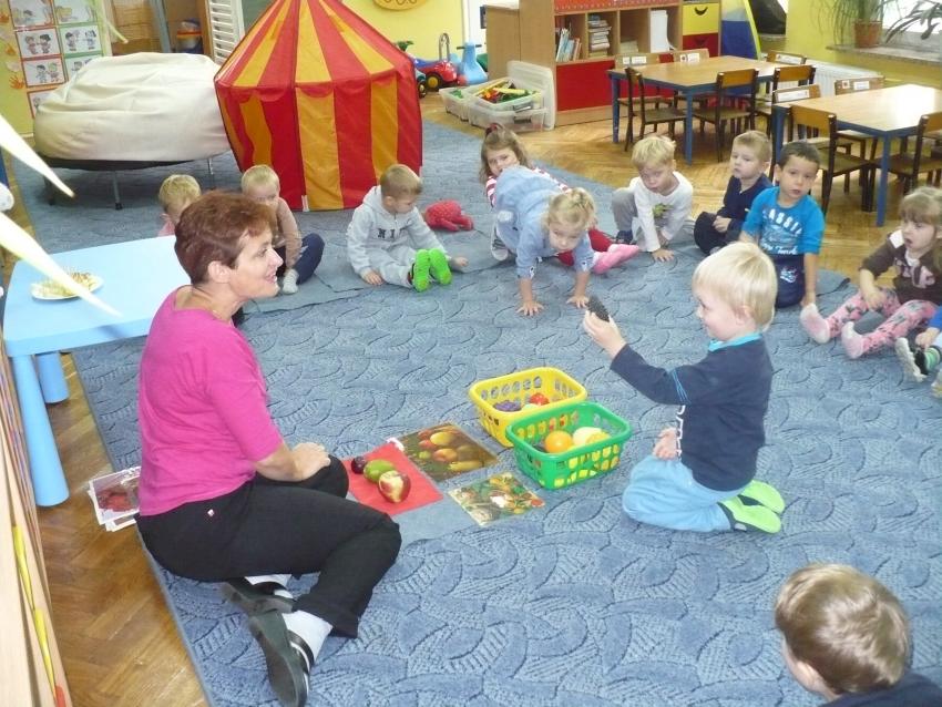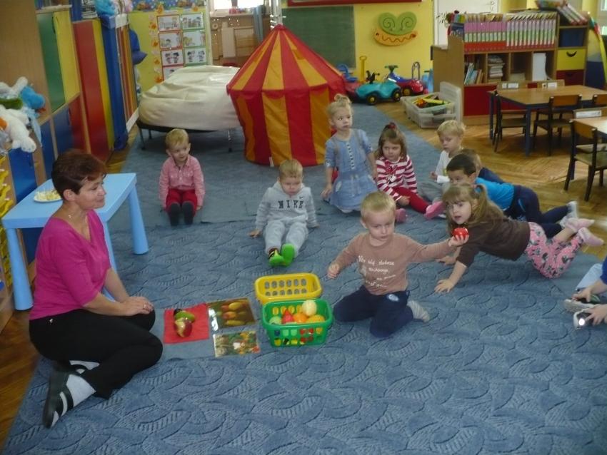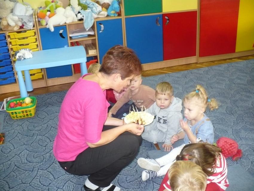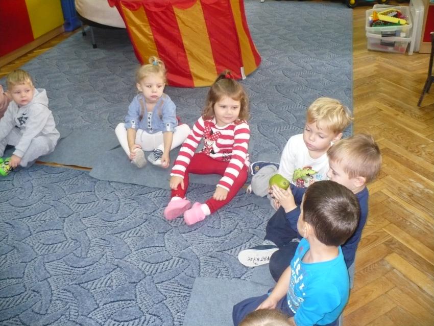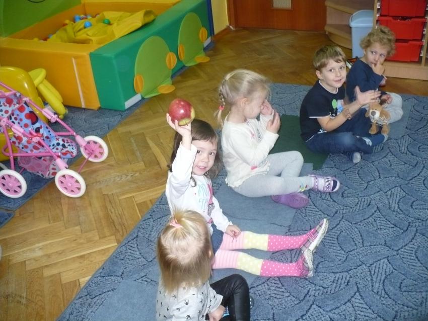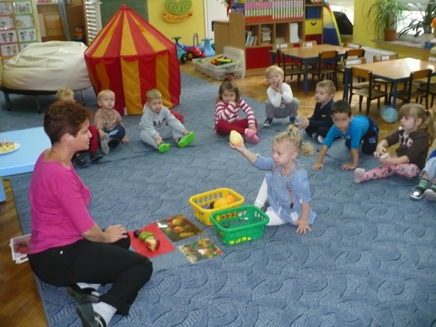 Spadła gruszka do fartuszka... a za nią i inne owoce, które Krasnoludki poznają wszystkimi zmysłami.