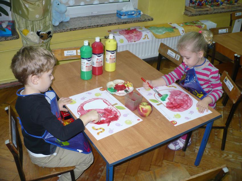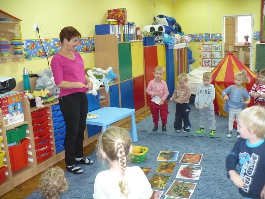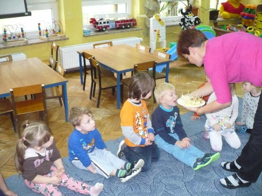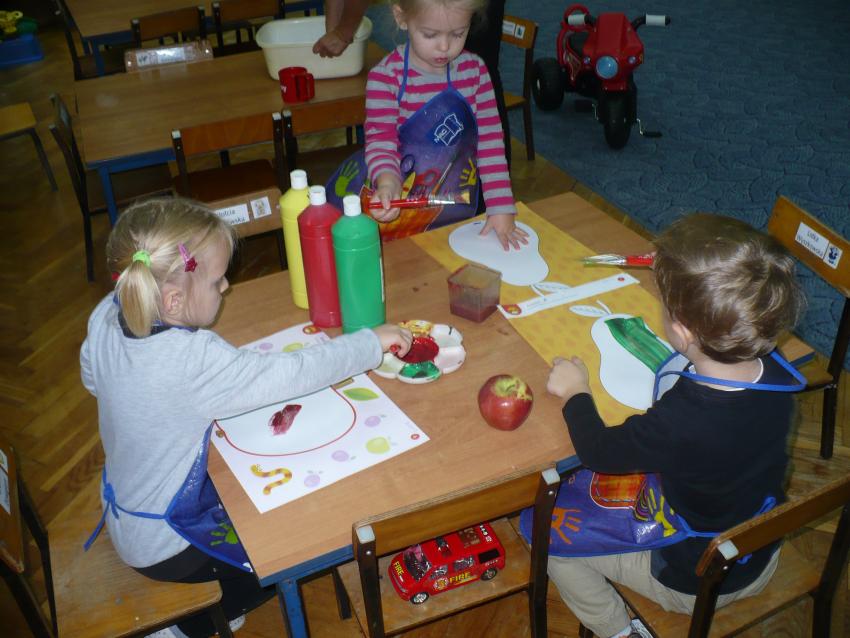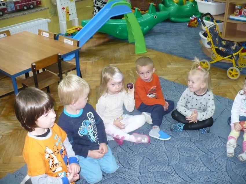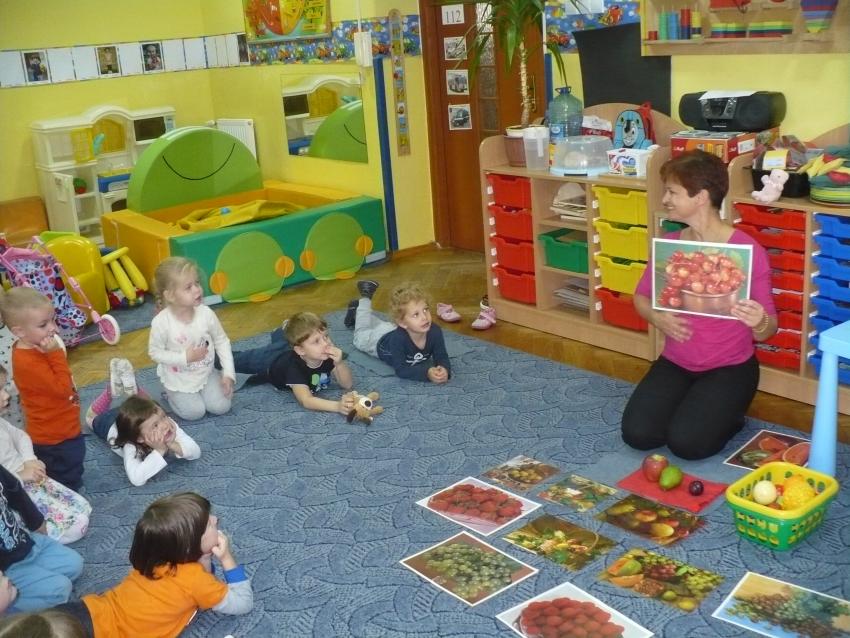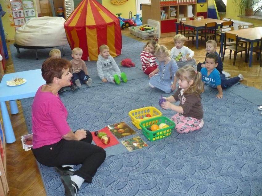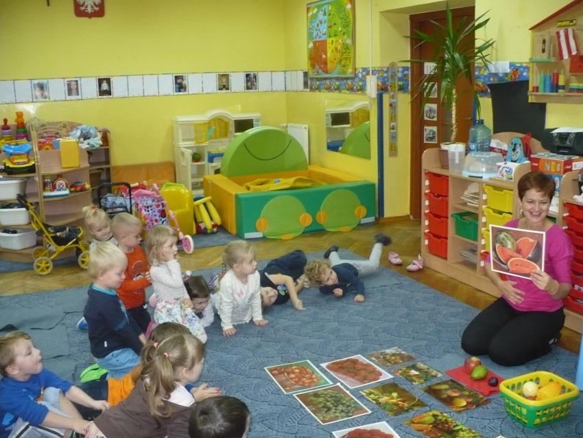 Spadła gruszka do fartuszka... a za nią i inne owoce, które Krasnoludki poznają wszystkimi zmysłami.