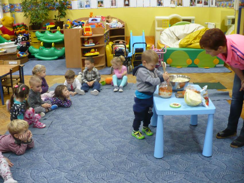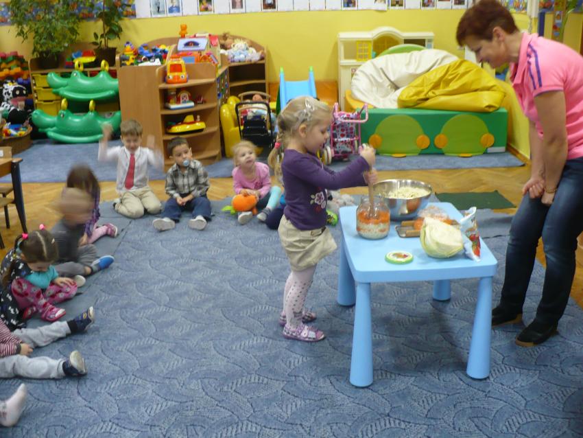 Krasnoludki wiedzą już, jak przygotować się do zimy. Potrafią nawet ukisić kapustę, a półki w ich spiżarni nie świecą pustkami.